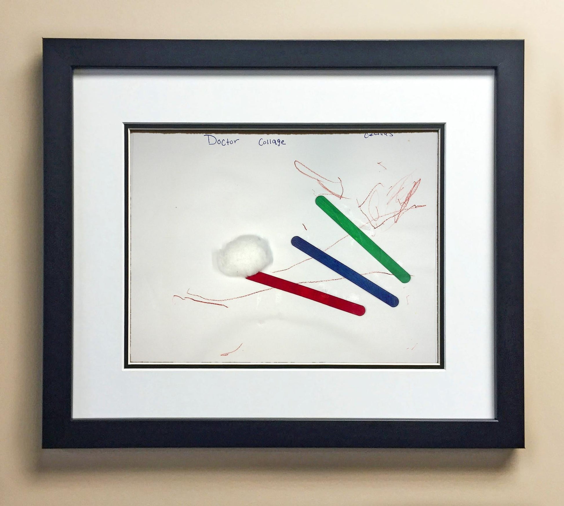 Included with the purchase is the Students Artwork, Frame, double matboard, shatter proof plexiglass, and a ready to hang backerboard with turnbuttons