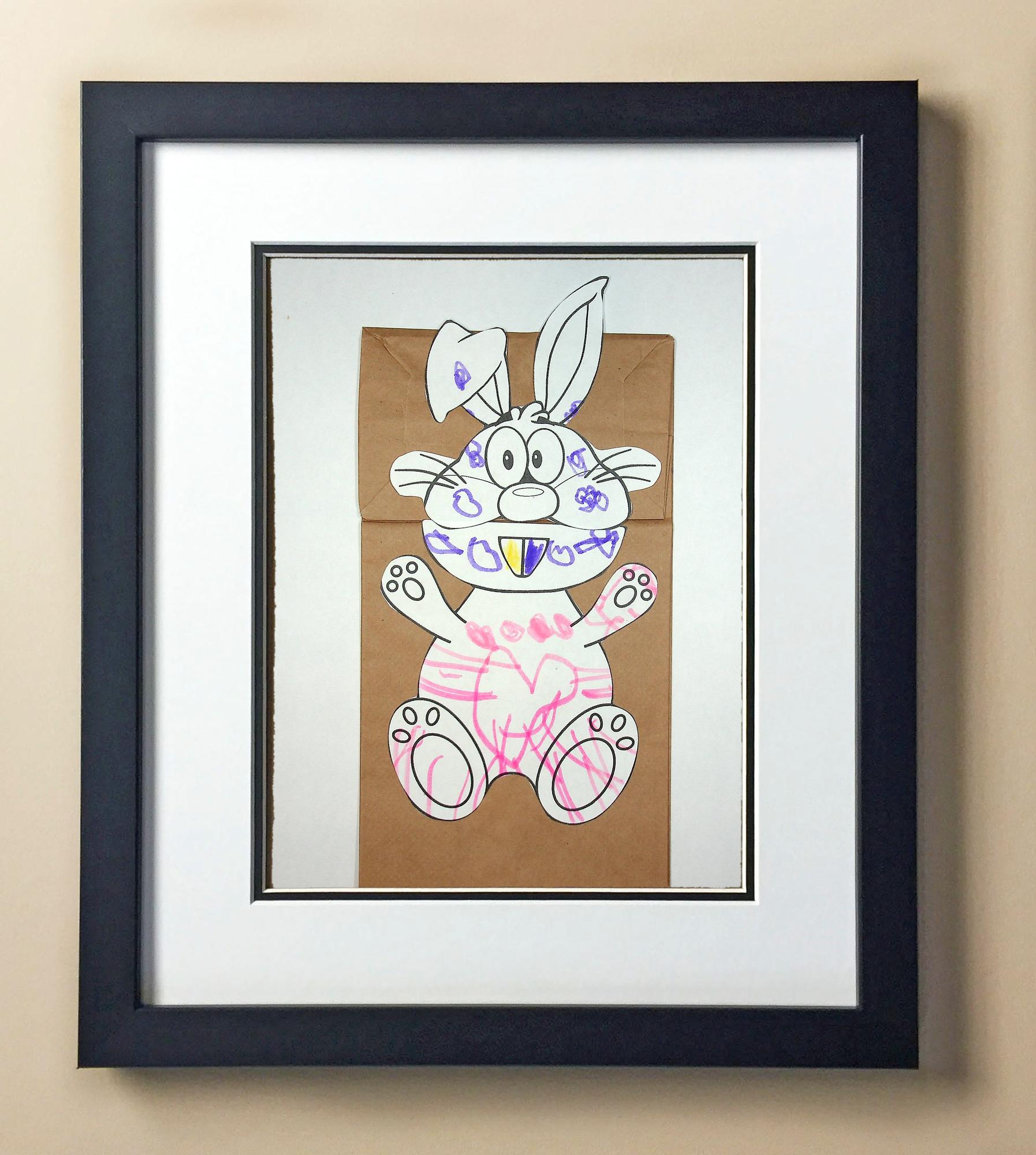 Included with the purchase is the Students Artwork, Frame, double matboard, shatter proof plexiglass, and a ready to hang backerboard with turnbuttons