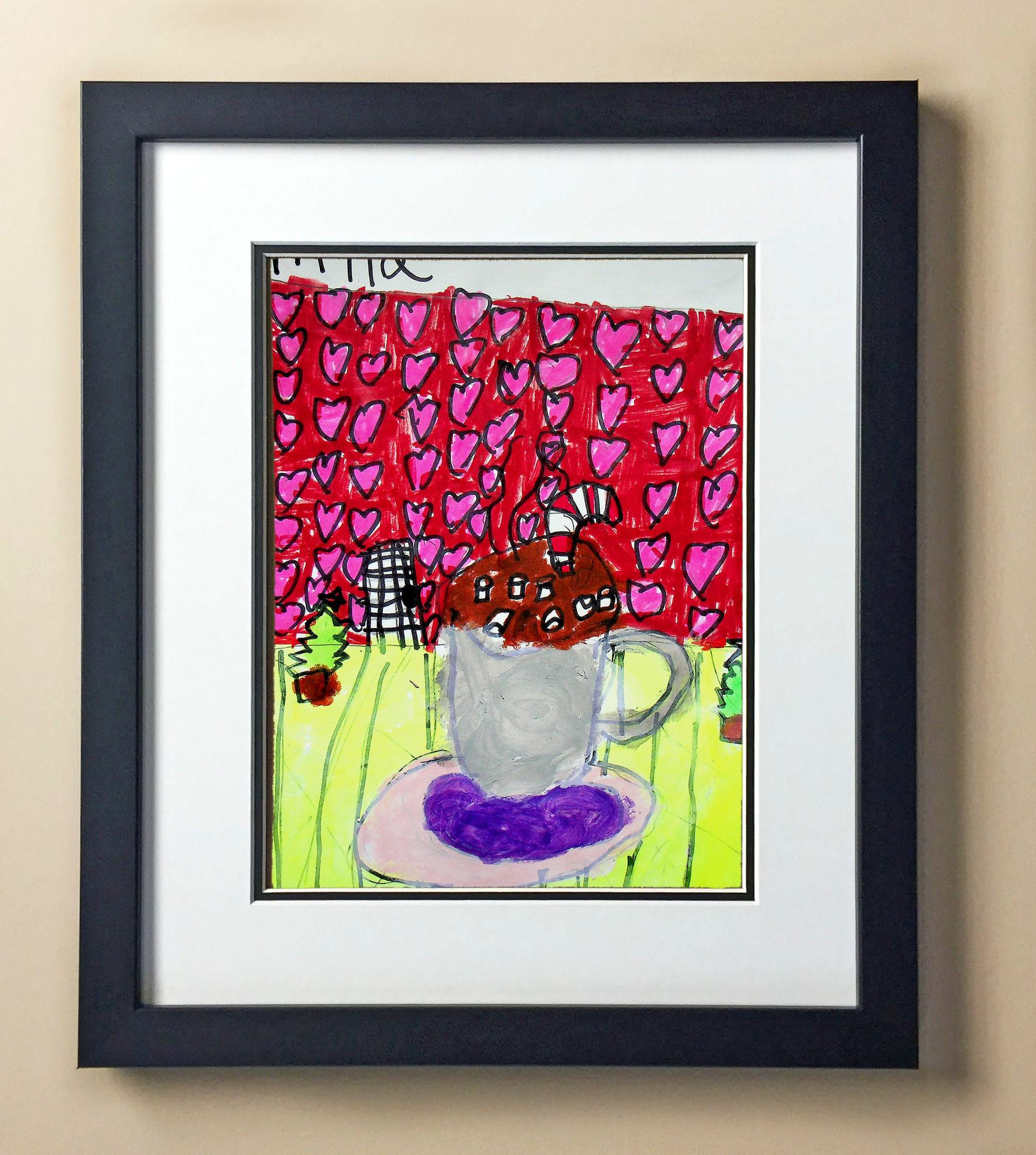 Included with the purchase is the Students Artwork, Frame, double matboard, shatter proof plexiglass, and a ready to hang backerboard with turnbuttons