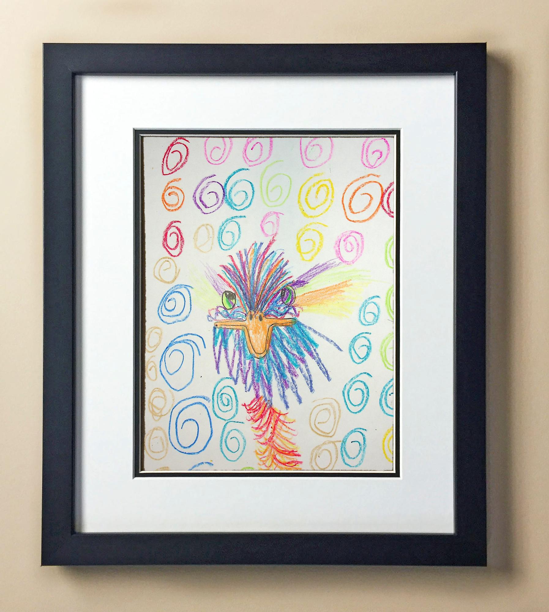 Included with the purchase is the Students Artwork, Frame, double matboard, shatter proof plexiglass, and a ready to hang backerboard with turnbuttons