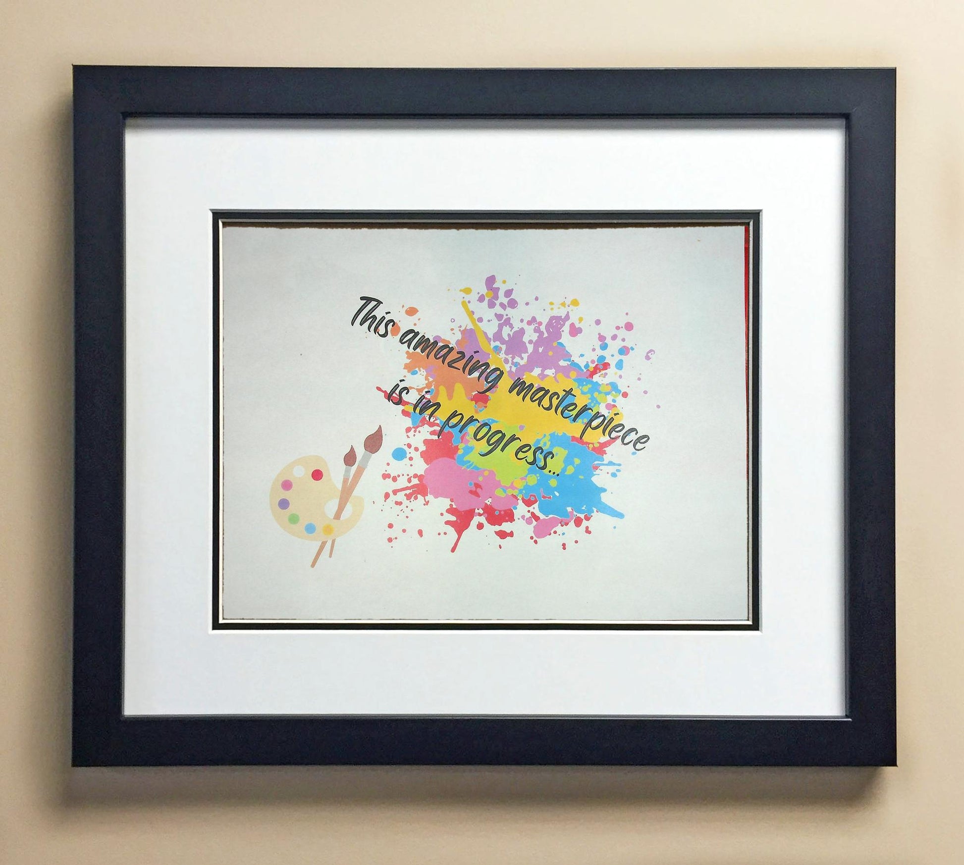 Included with the purchase is the Students Artwork, Frame, double matboard, shatter proof plexiglass, and a ready to hang backerboard with turnbuttons