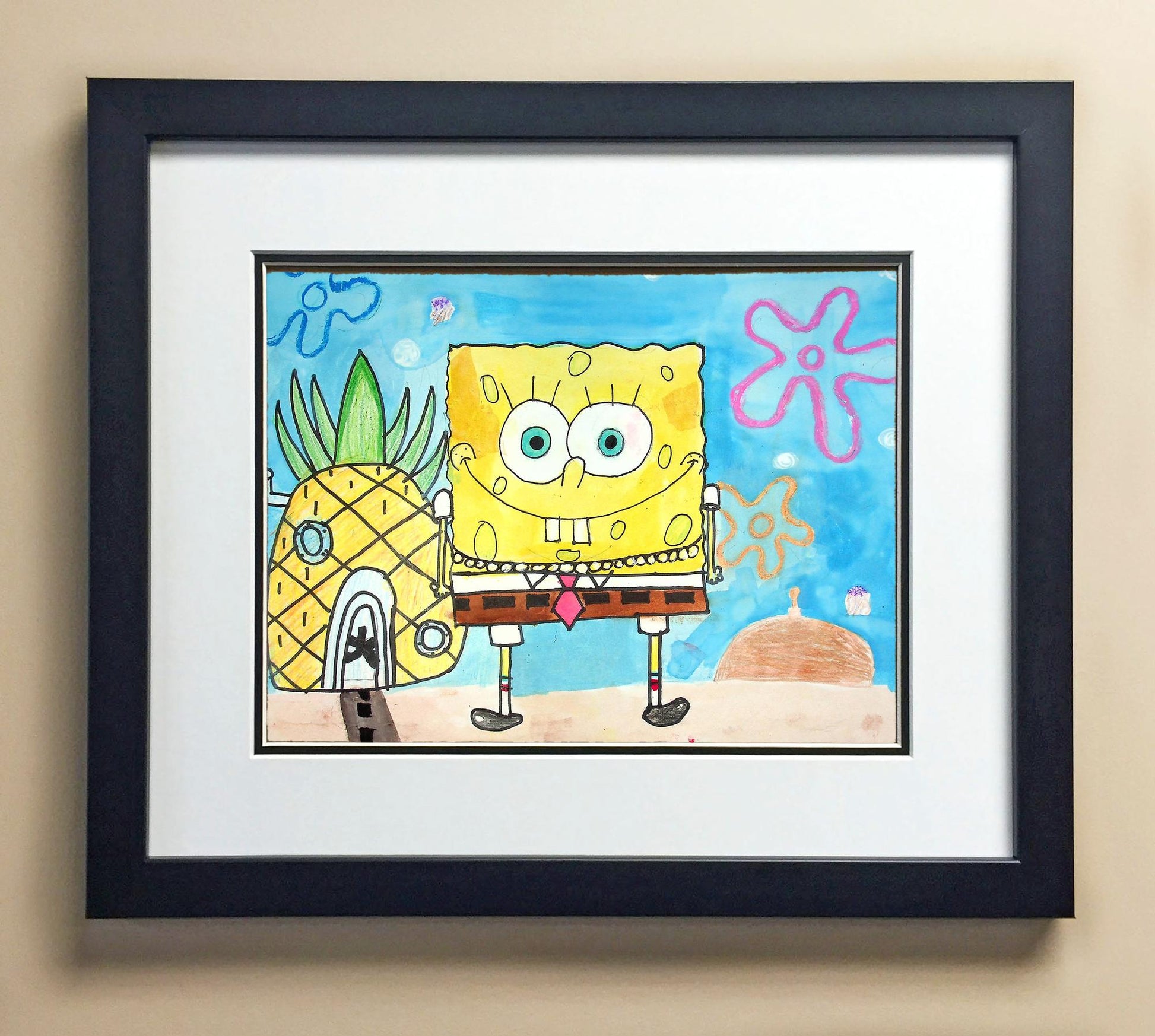 Included with the purchase is the Students Artwork, Frame, double matboard, shatter proof plexiglass, and a ready to hang backerboard with turnbuttons