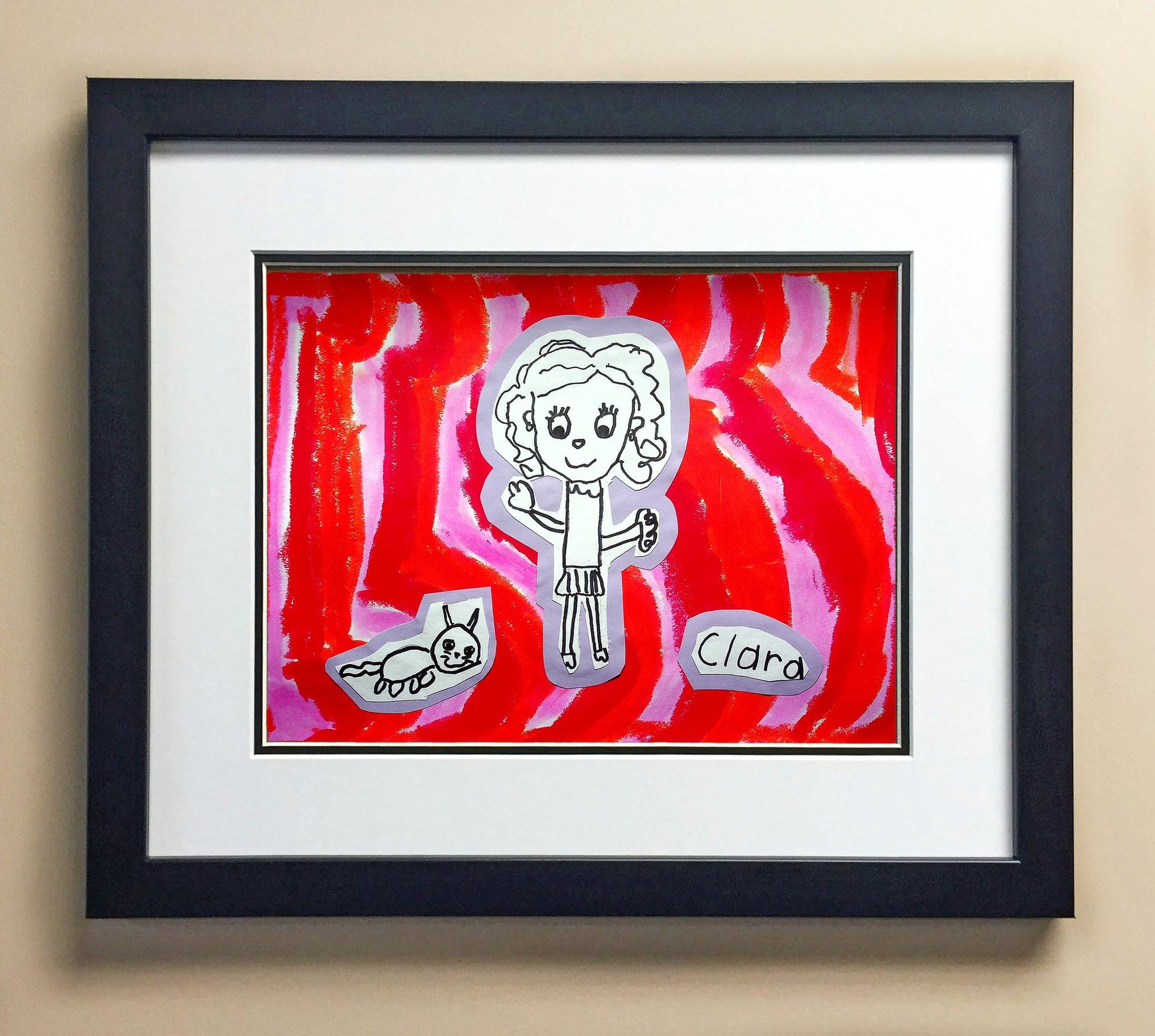 Included with the purchase is the Students Artwork, Frame, double matboard, shatter proof plexiglass, and a ready to hang backerboard with turnbuttons