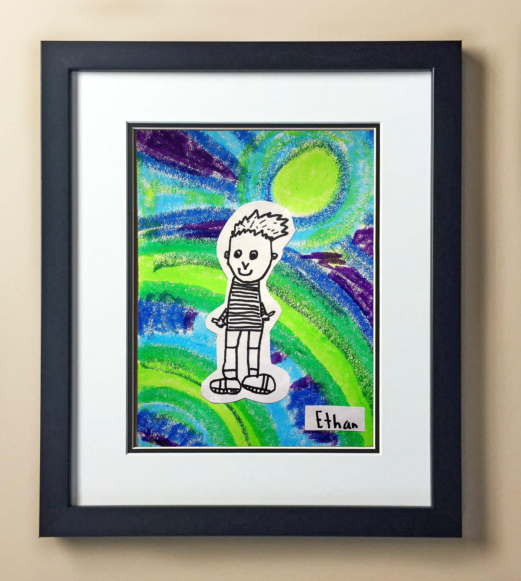 Included with the purchase is the Students Artwork, Frame, double matboard, shatter proof plexiglass, and a ready to hang backerboard with turnbuttons