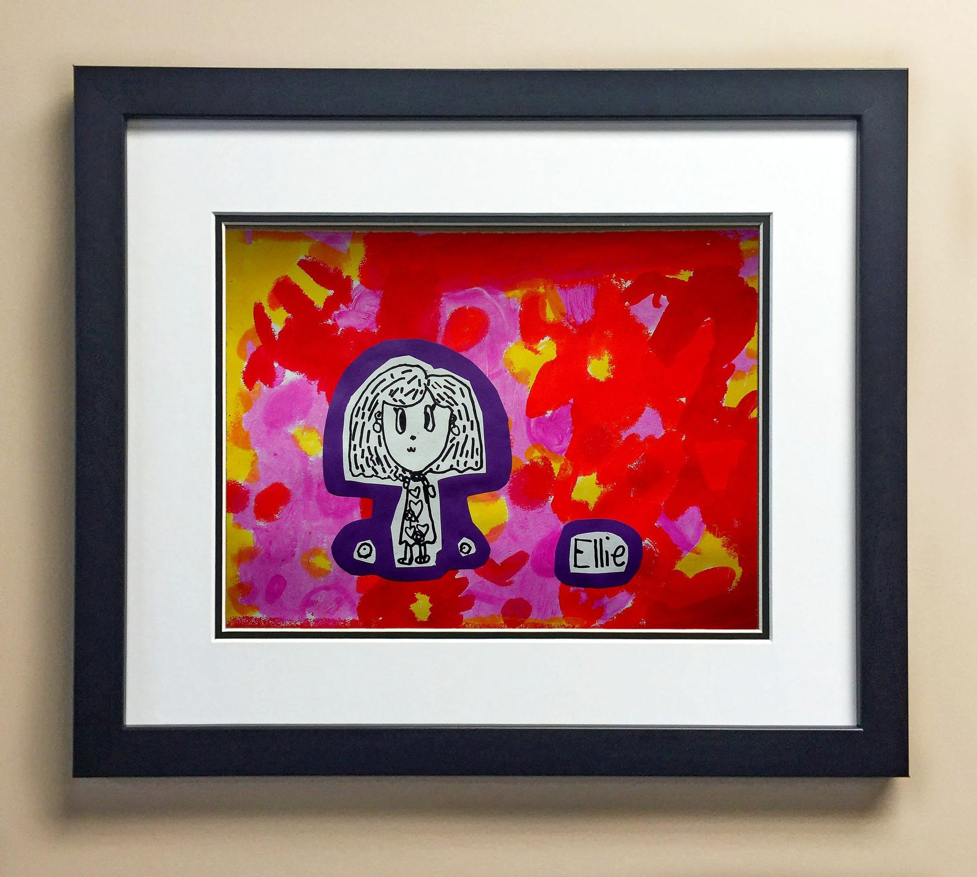Included with the purchase is the Students Artwork, Frame, double matboard, shatter proof plexiglass, and a ready to hang backerboard with turnbuttons
