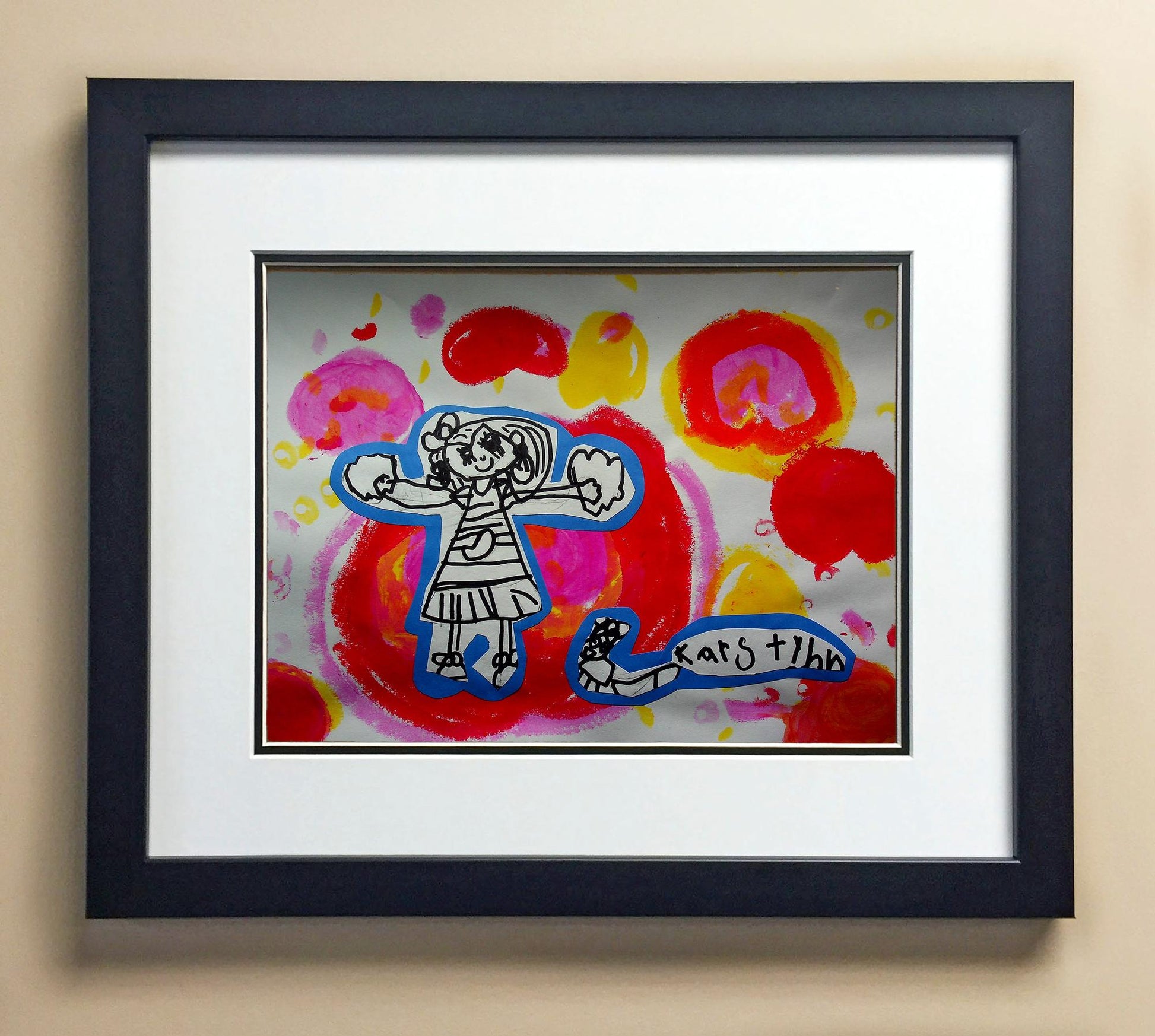 Included with the purchase is the Students Artwork, Frame, double matboard, shatter proof plexiglass, and a ready to hang backerboard with turnbuttons