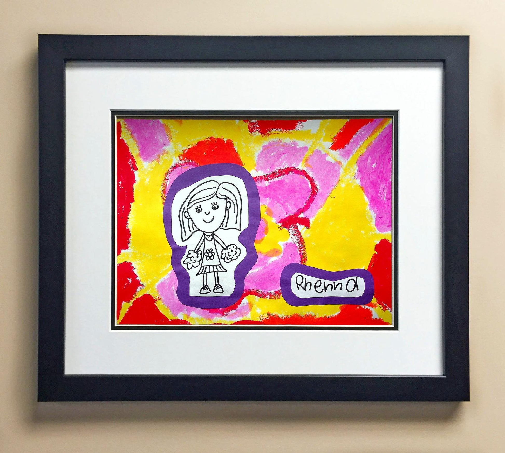 Included with the purchase is the Students Artwork, Frame, double matboard, shatter proof plexiglass, and a ready to hang backerboard with turnbuttons