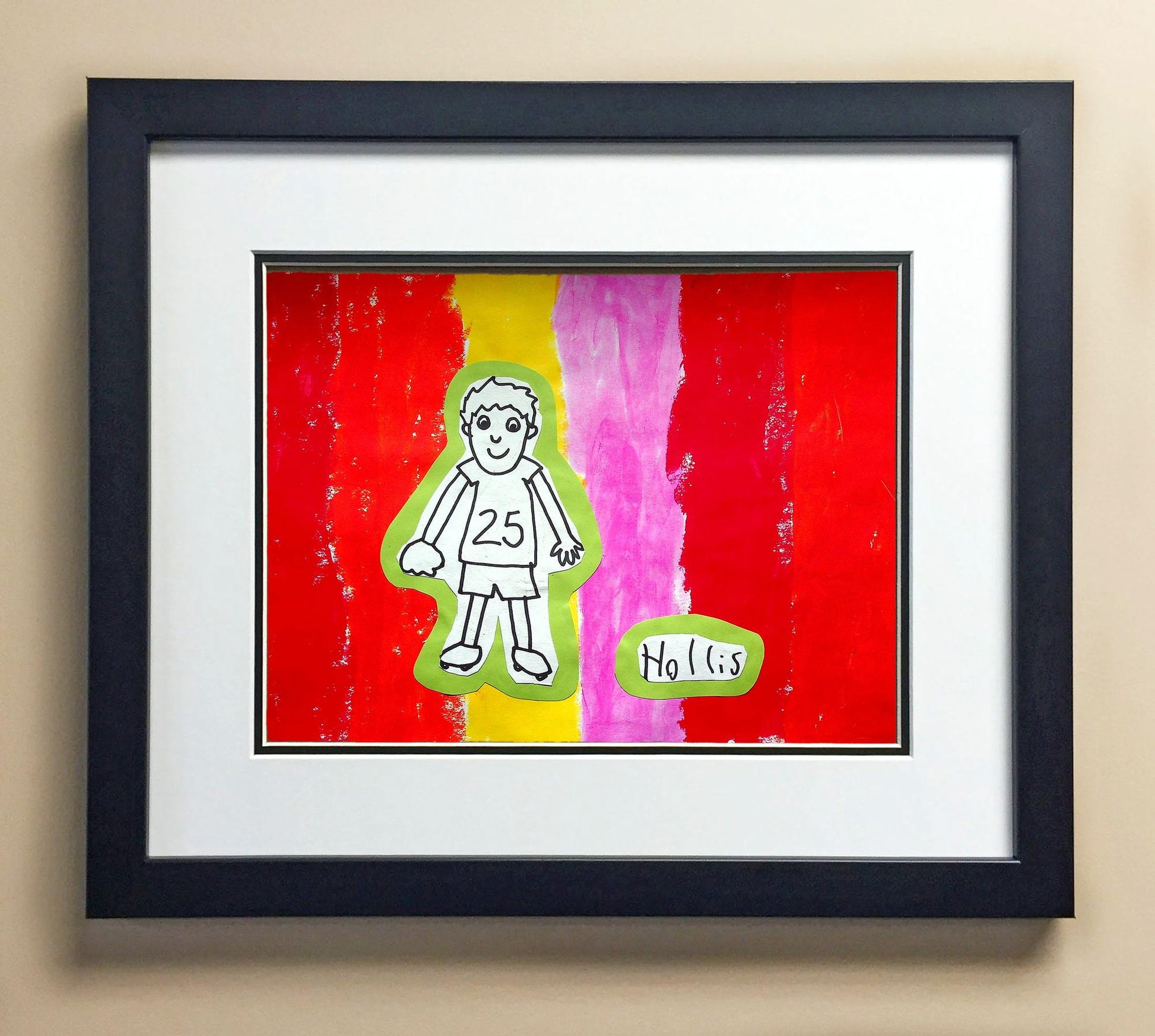 Included with the purchase is the Students Artwork, Frame, double matboard, shatter proof plexiglass, and a ready to hang backerboard with turnbuttons