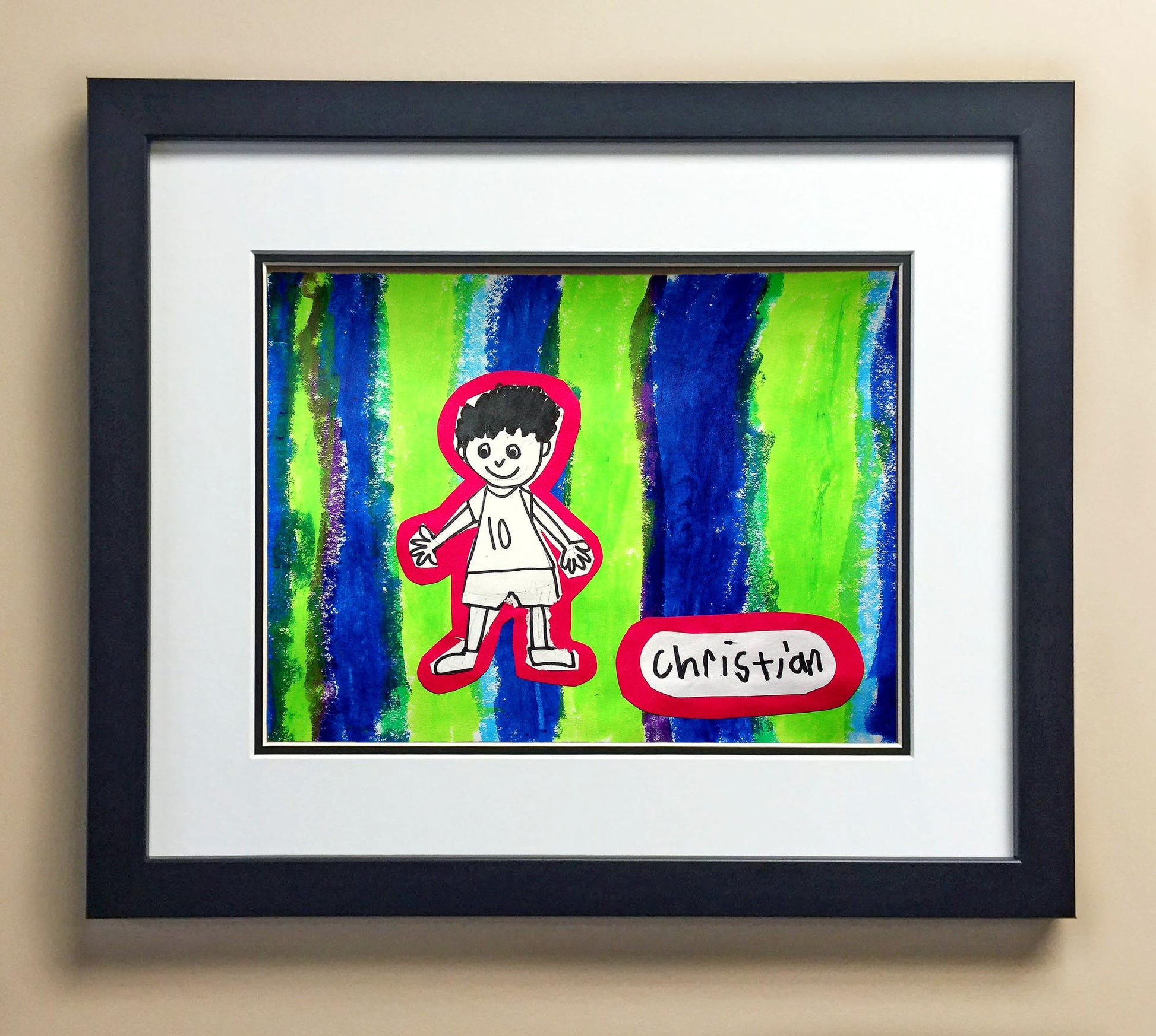 Included with the purchase is the Students Artwork, Frame, double matboard, shatter proof plexiglass, and a ready to hang backerboard with turnbuttons