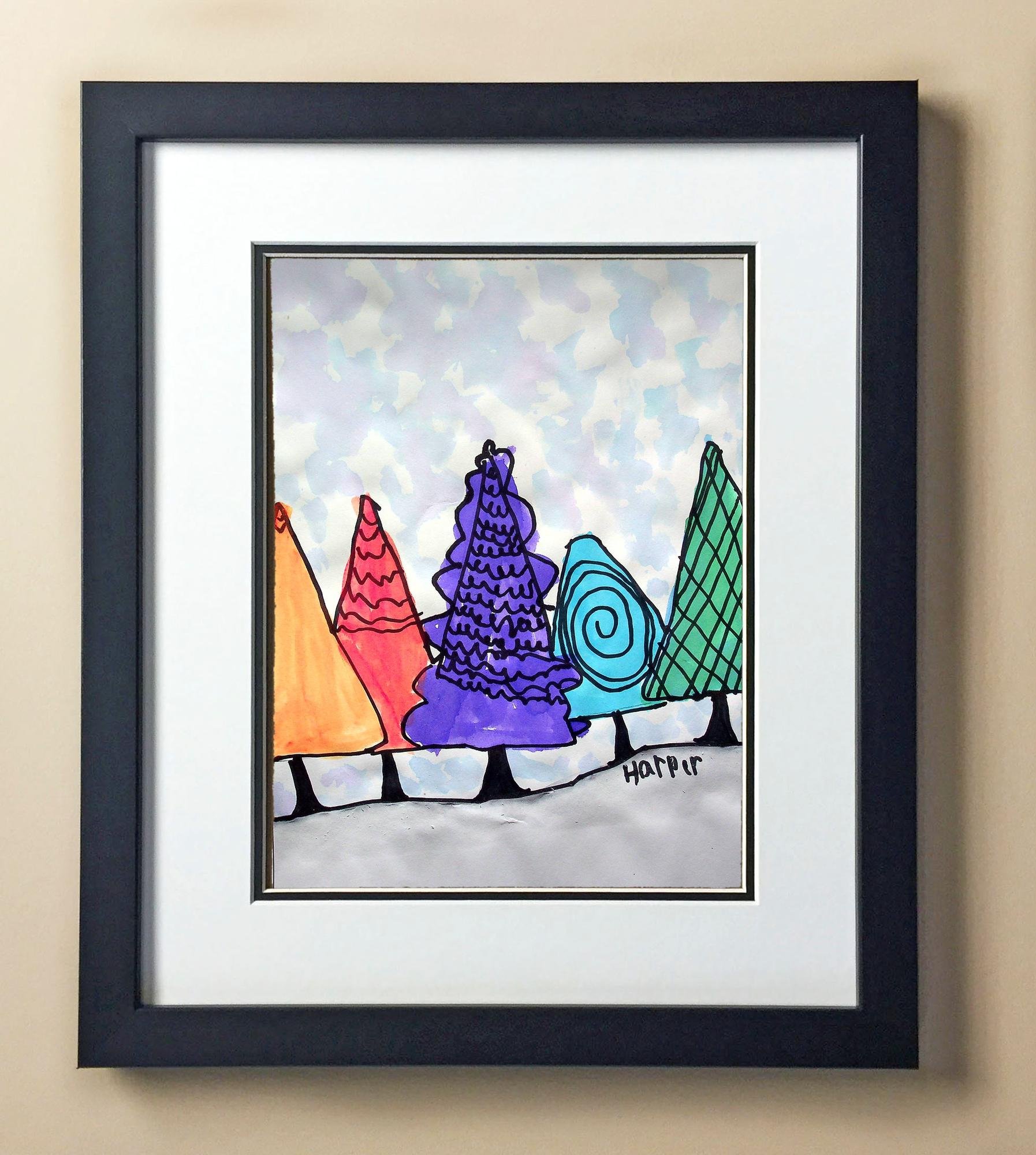 Included with the purchase is the Students Artwork, Frame, double matboard, shatter proof plexiglass, and a ready to hang backerboard with turnbuttons