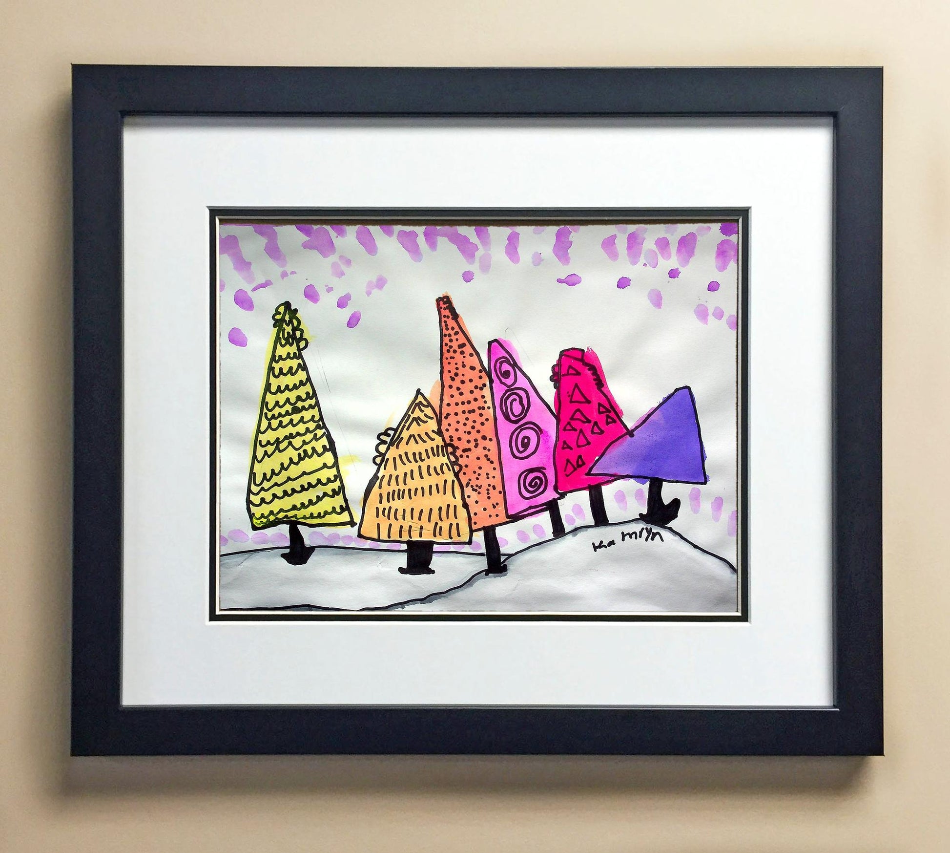 Included with the purchase is the Students Artwork, Frame, double matboard, shatter proof plexiglass, and a ready to hang backerboard with turnbuttons