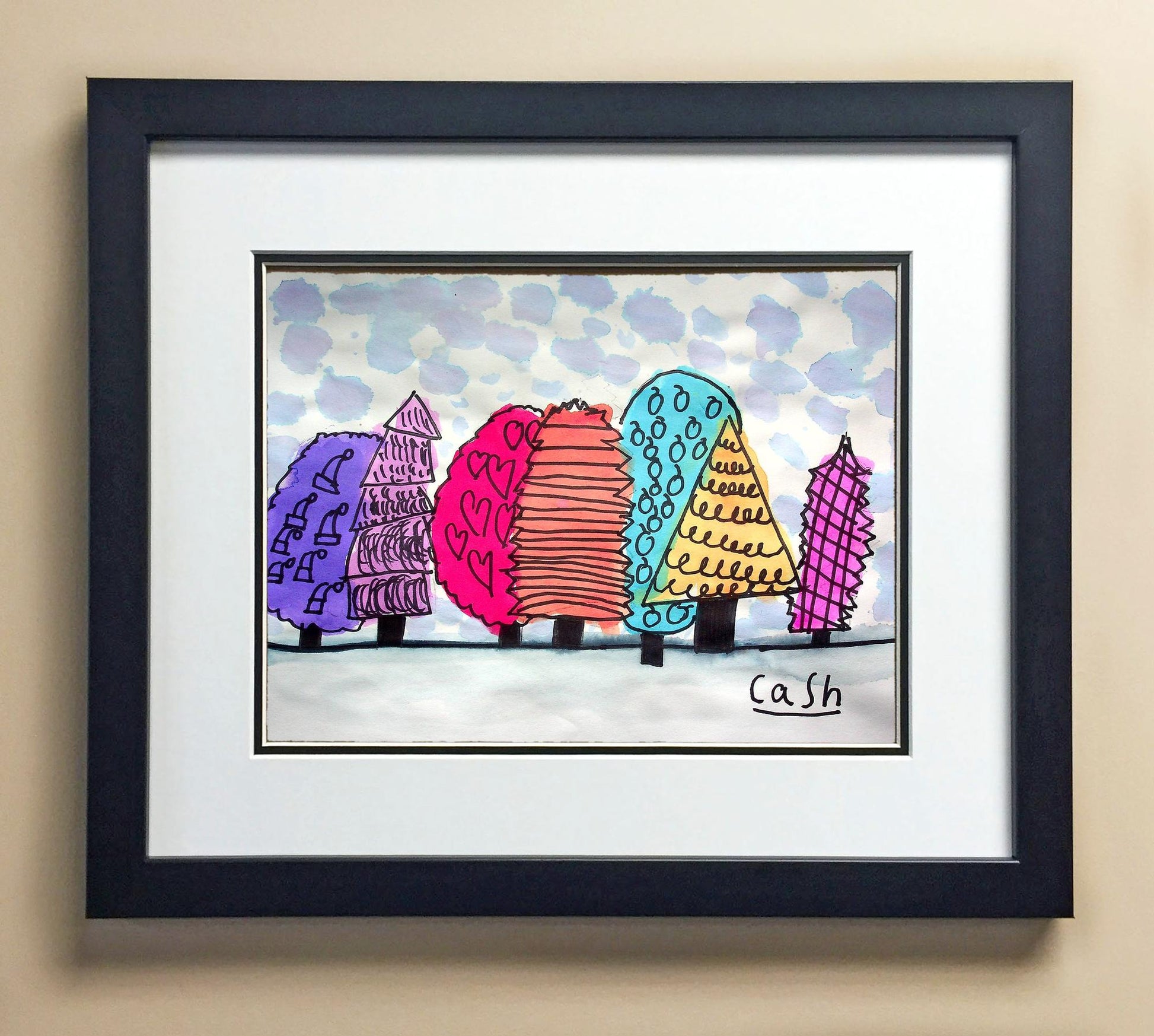 Included with the purchase is the Students Artwork, Frame, double matboard, shatter proof plexiglass, and a ready to hang backerboard with turnbuttons
