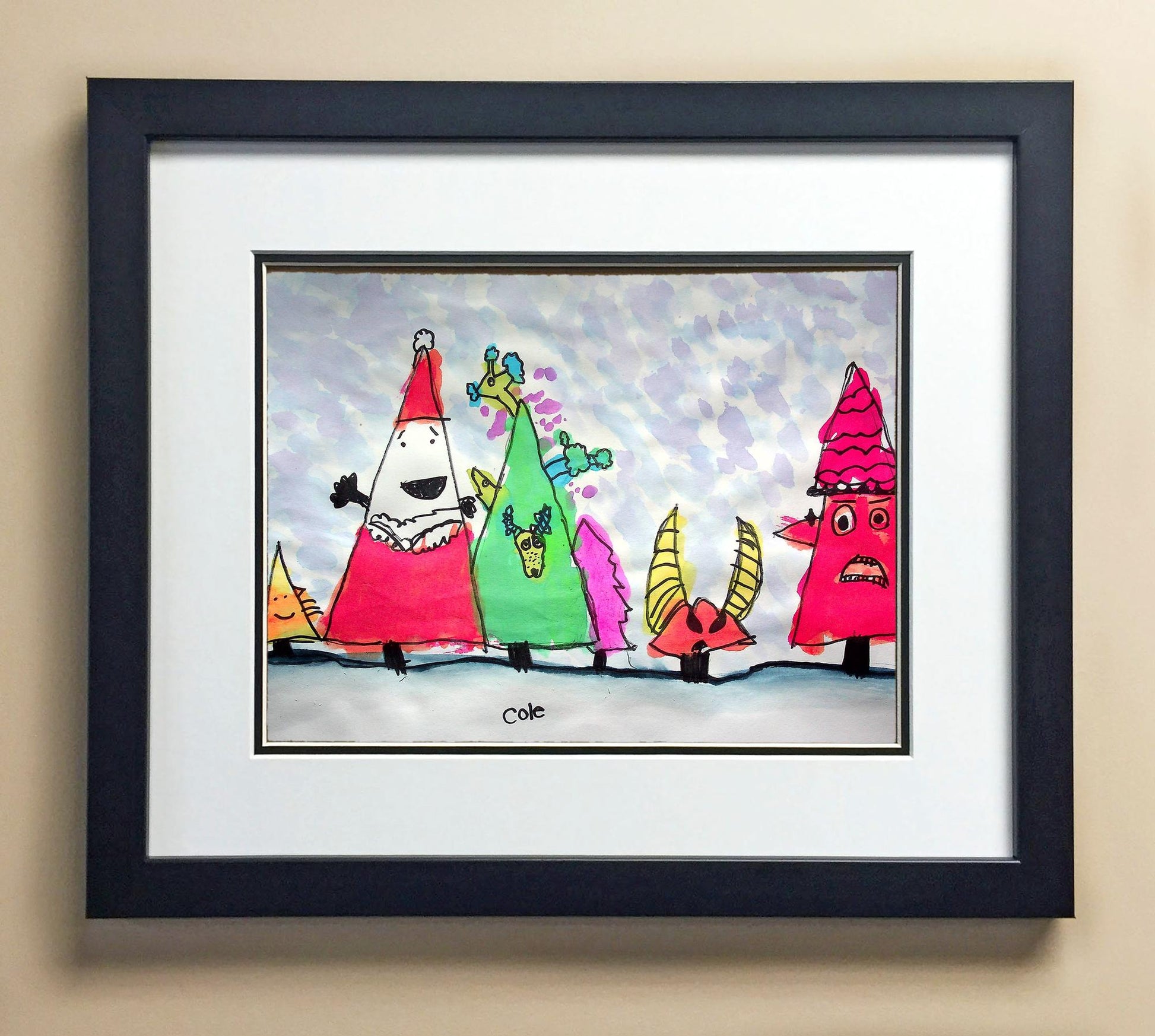 Included with the purchase is the Students Artwork, Frame, double matboard, shatter proof plexiglass, and a ready to hang backerboard with turnbuttons