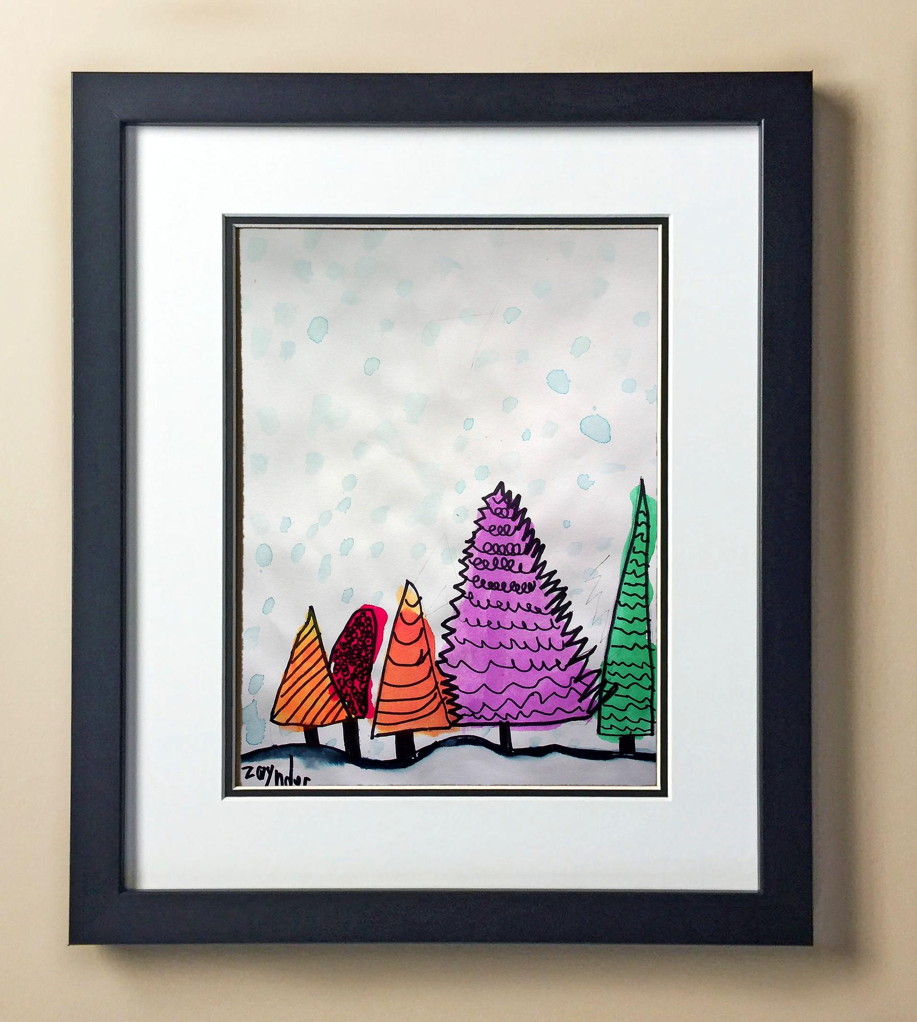 Included with the purchase is the Students Artwork, Frame, double matboard, shatter proof plexiglass, and a ready to hang backerboard with turnbuttons