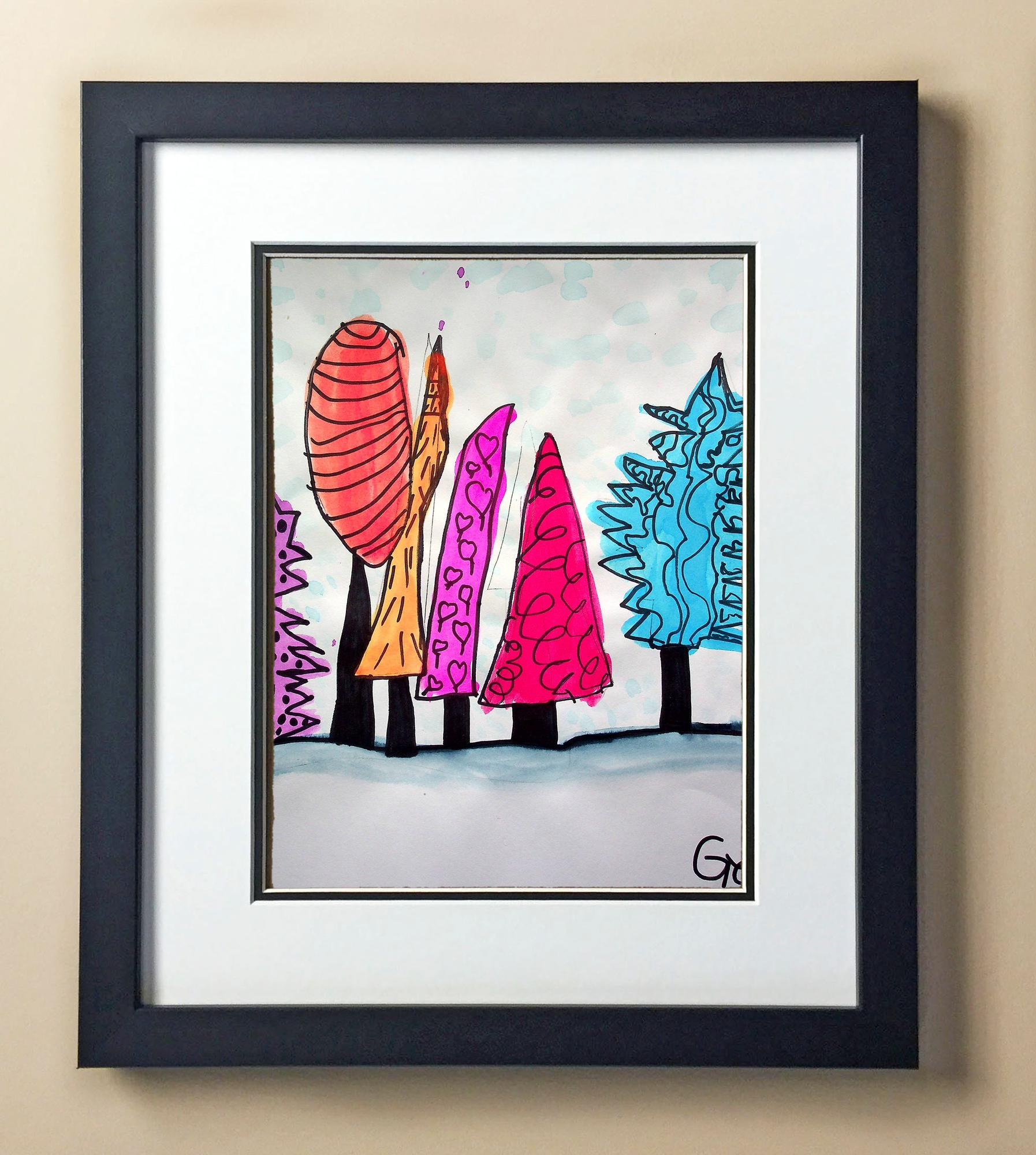 Included with the purchase is the Students Artwork, Frame, double matboard, shatter proof plexiglass, and a ready to hang backerboard with turnbuttons