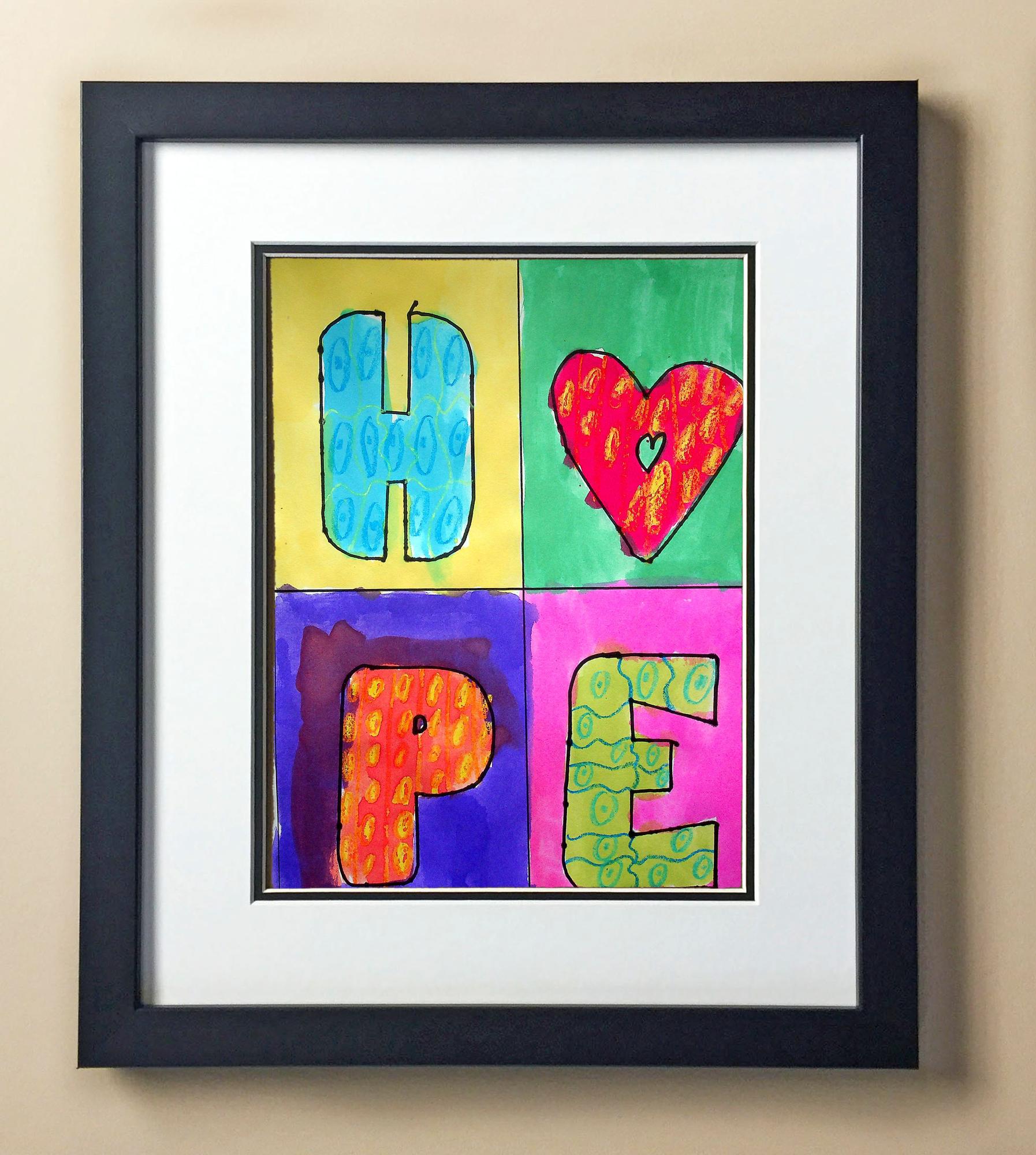 Included with the purchase is the Students Artwork, Frame, double matboard, shatter proof plexiglass, and a ready to hang backerboard with turnbuttons