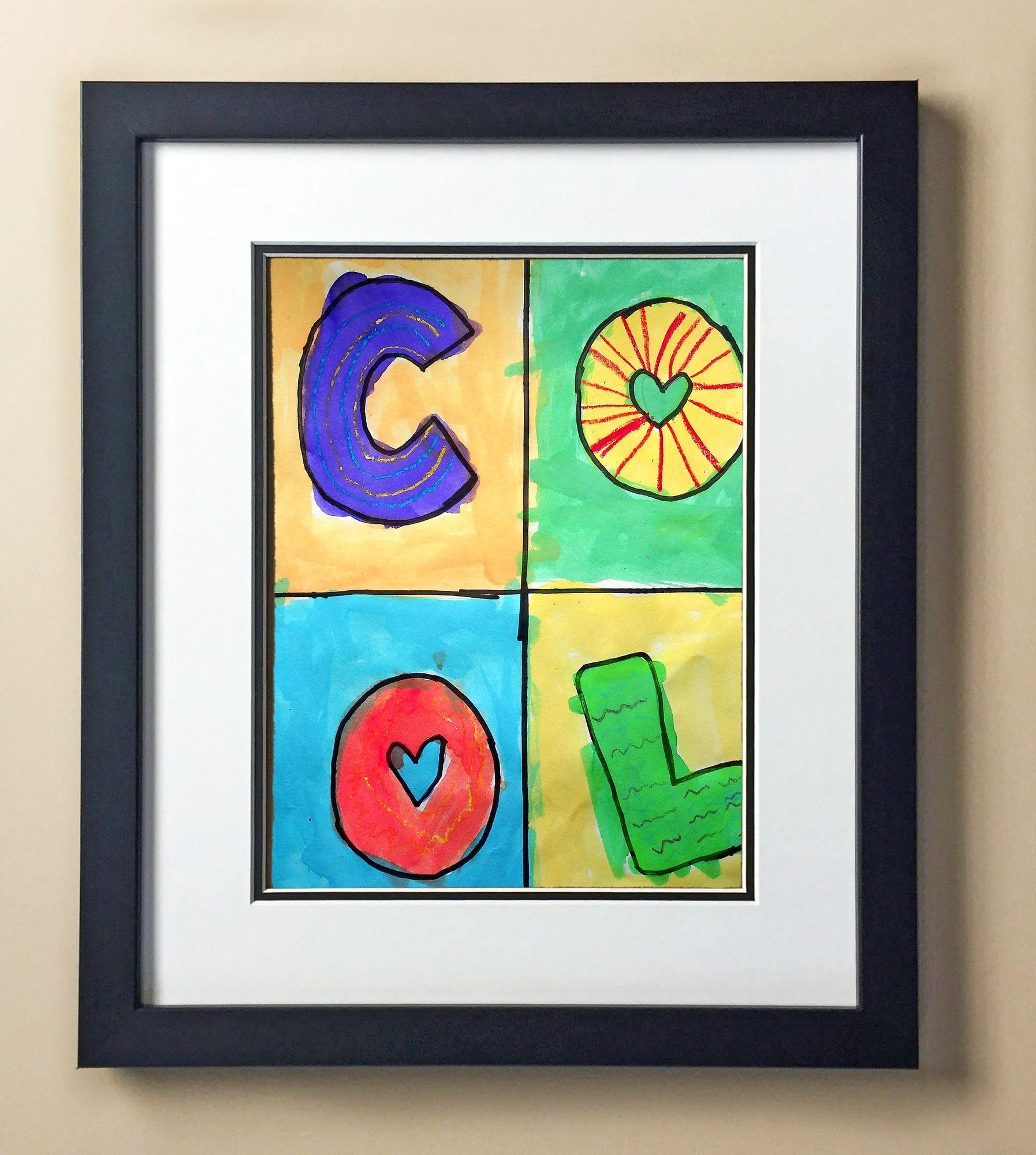 Included with the purchase is the Students Artwork, Frame, double matboard, shatter proof plexiglass, and a ready to hang backerboard with turnbuttons