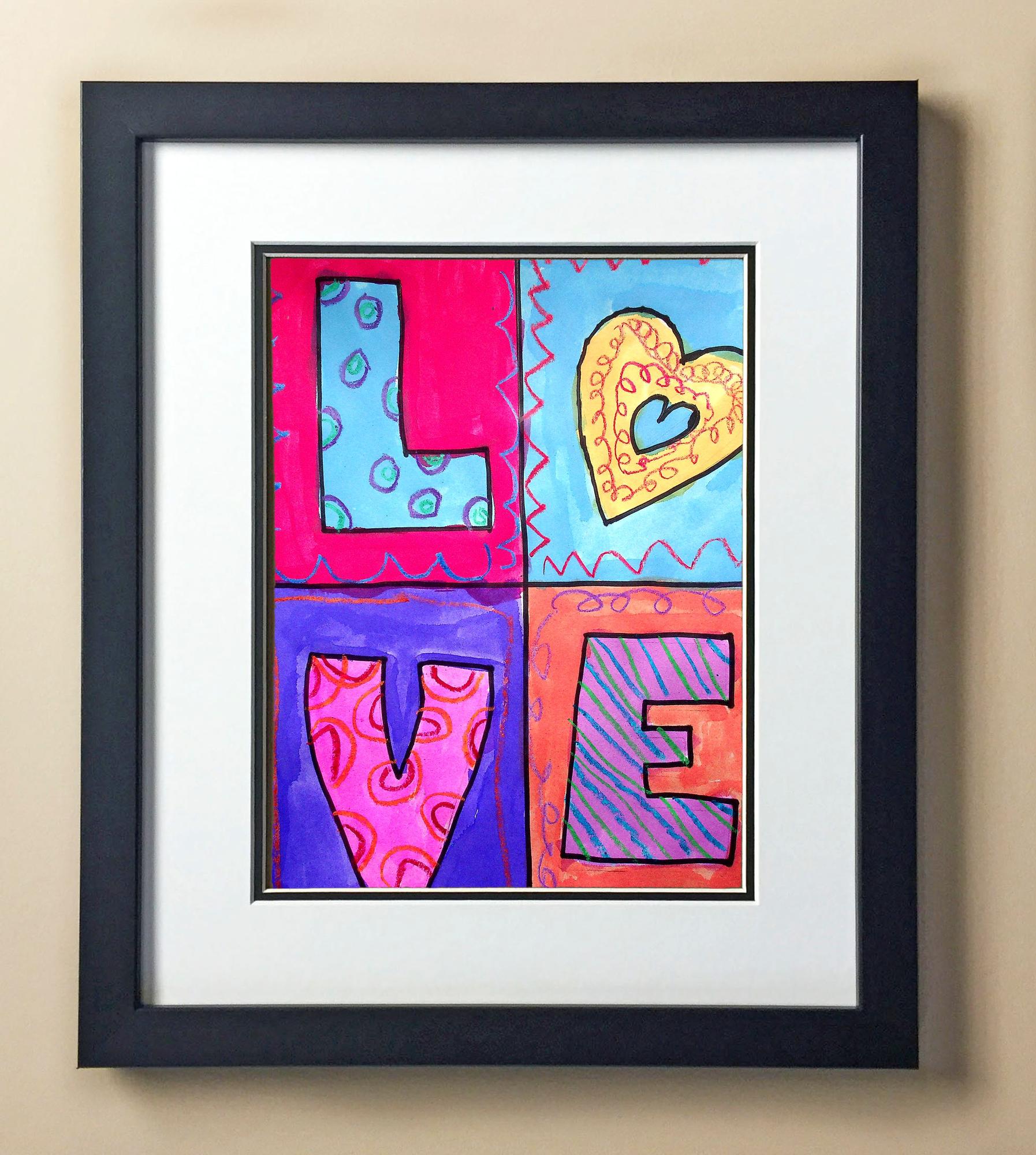 Included with the purchase is the Students Artwork, Frame, double matboard, shatter proof plexiglass, and a ready to hang backerboard with turnbuttons