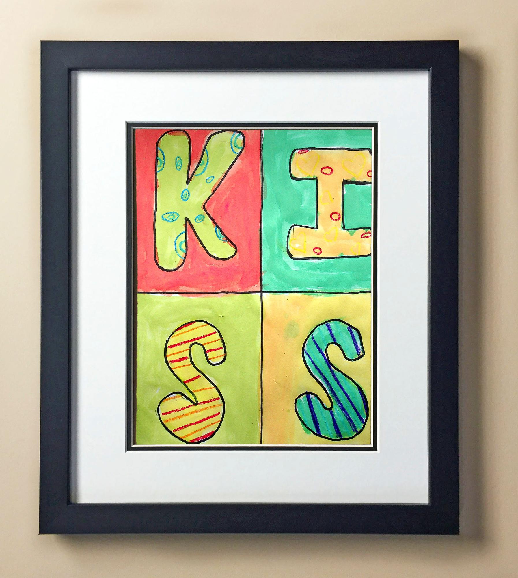 Included with the purchase is the Students Artwork, Frame, double matboard, shatter proof plexiglass, and a ready to hang backerboard with turnbuttons