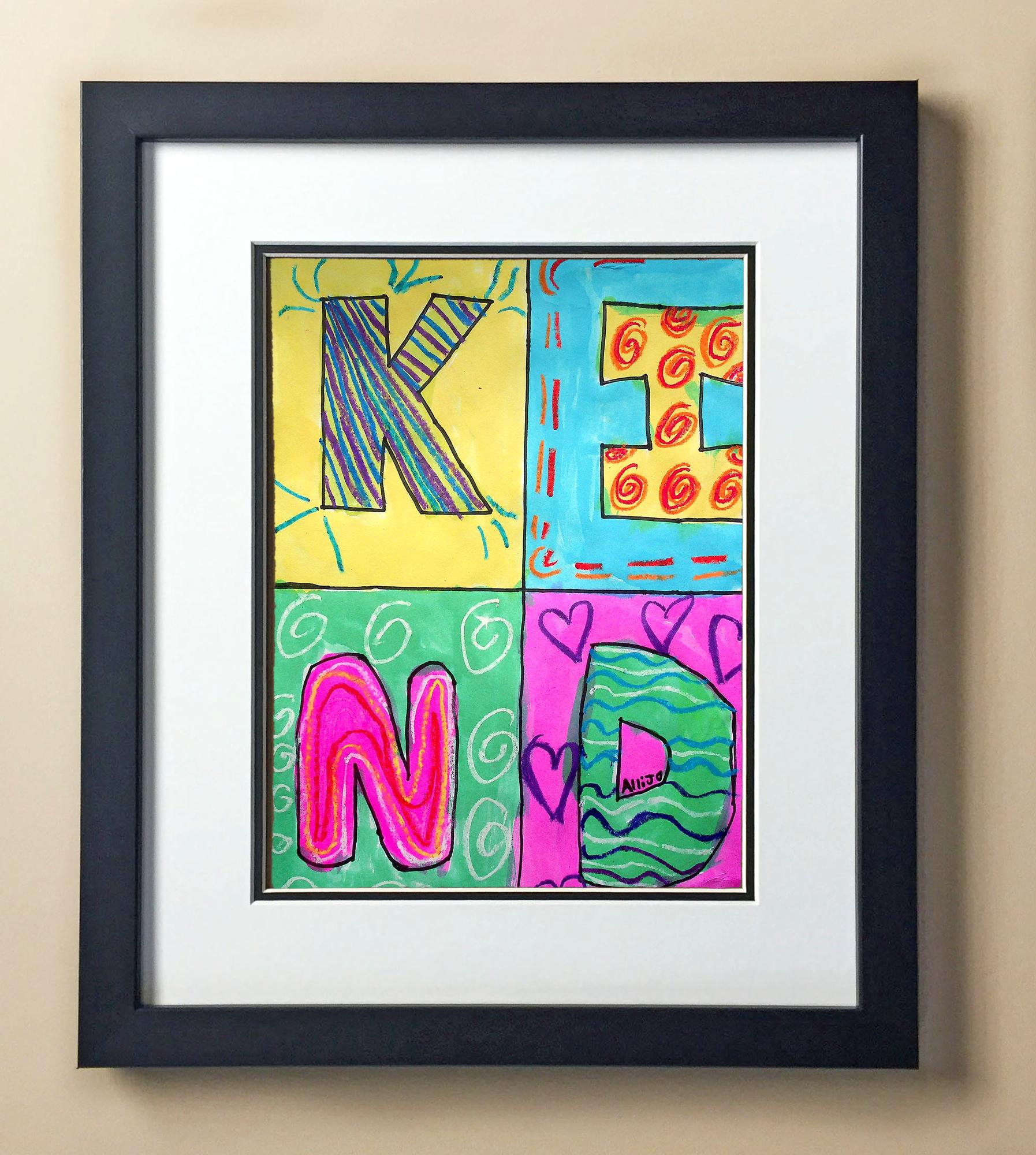 Included with the purchase is the Students Artwork, Frame, double matboard, shatter proof plexiglass, and a ready to hang backerboard with turnbuttons