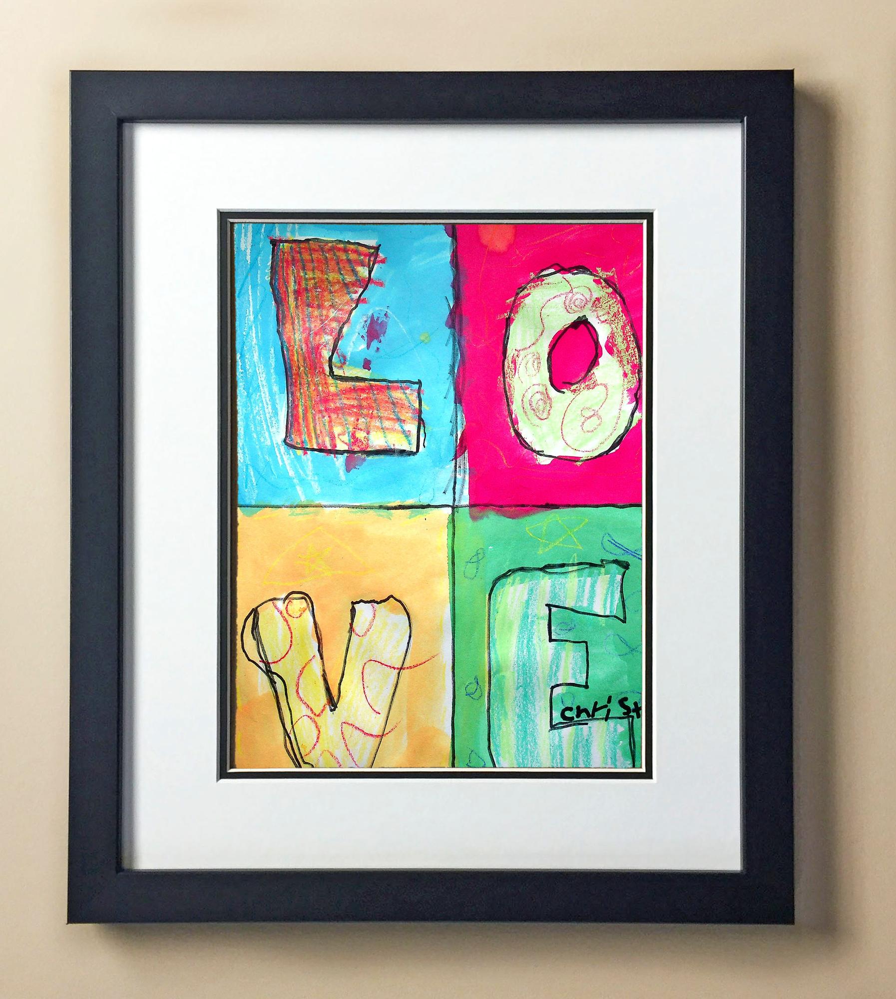 Included with the purchase is the Students Artwork, Frame, double matboard, shatter proof plexiglass, and a ready to hang backerboard with turnbuttons
