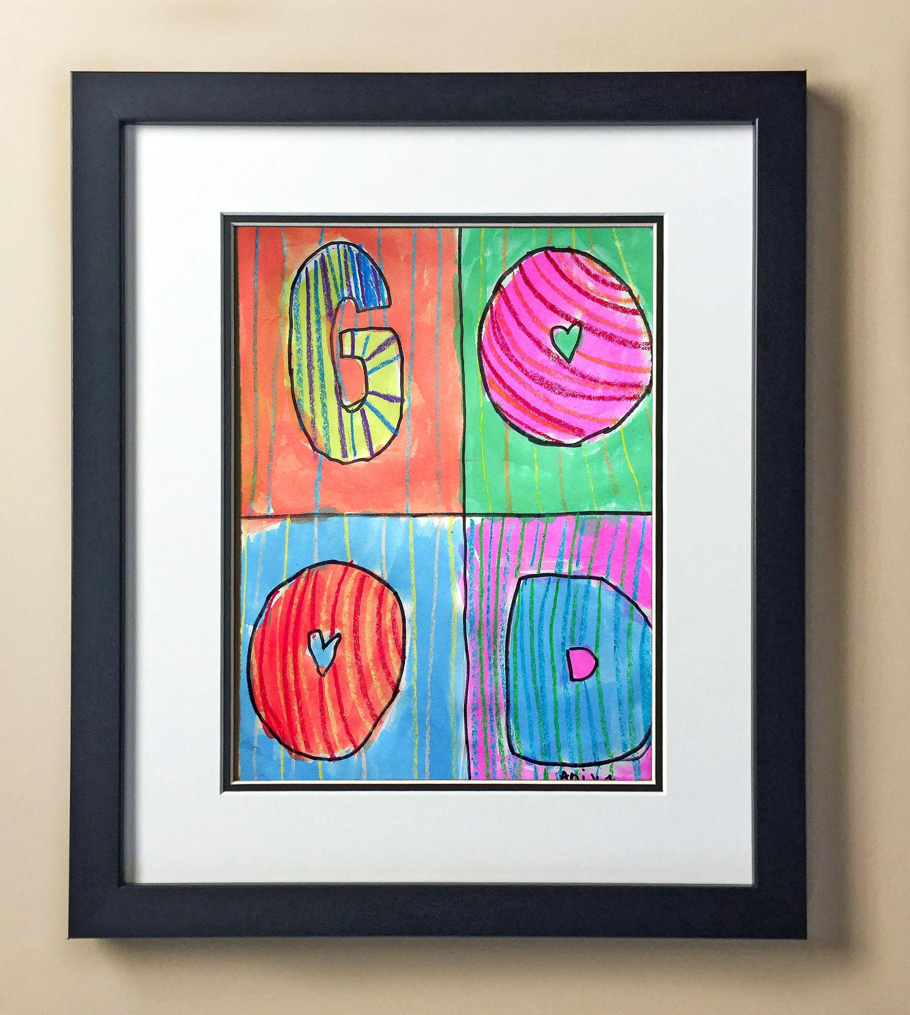 Included with the purchase is the Students Artwork, Frame, double matboard, shatter proof plexiglass, and a ready to hang backerboard with turnbuttons