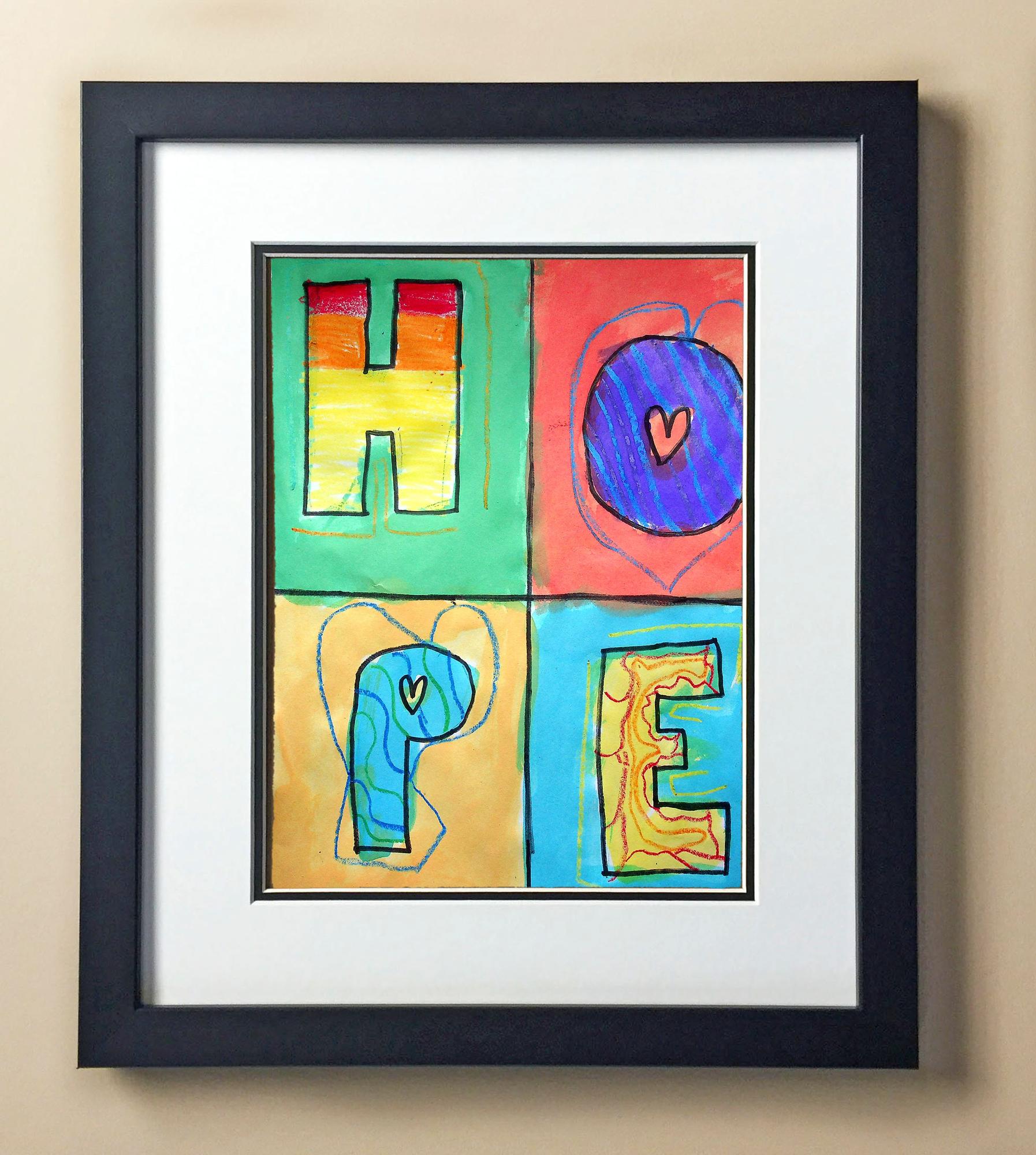 Included with the purchase is the Students Artwork, Frame, double matboard, shatter proof plexiglass, and a ready to hang backerboard with turnbuttons