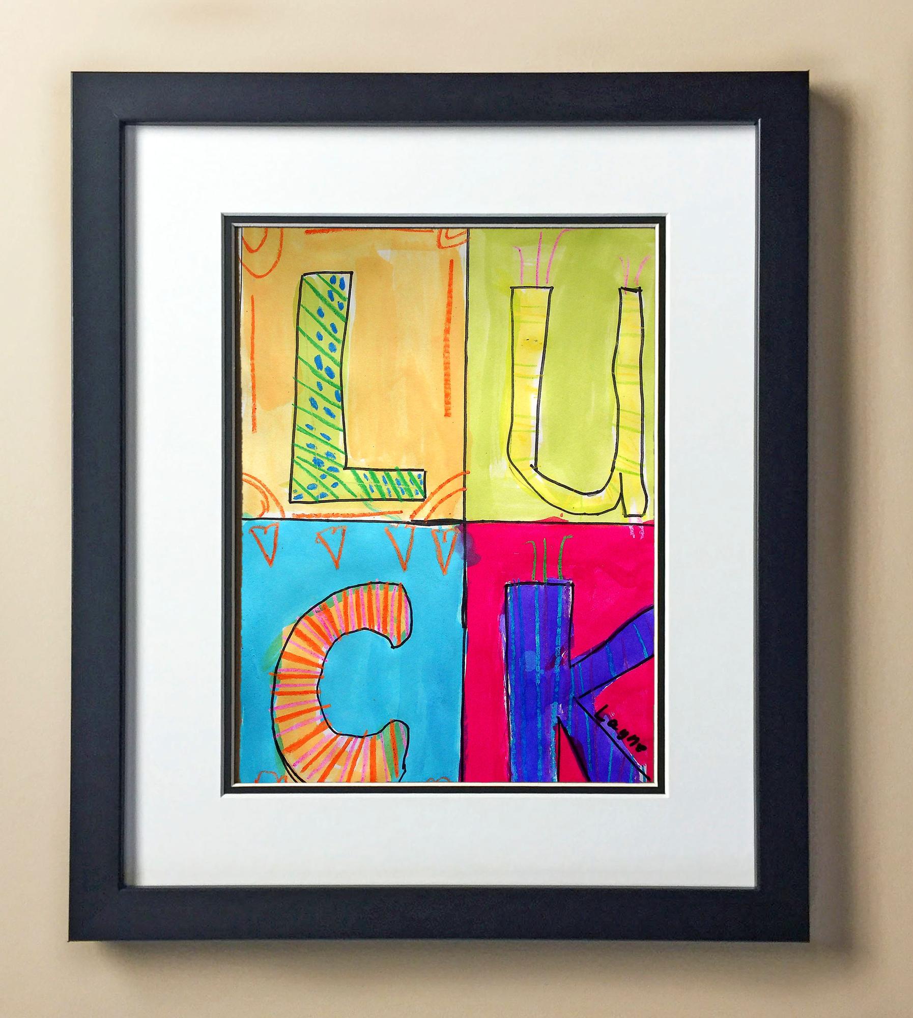 Included with the purchase is the Students Artwork, Frame, double matboard, shatter proof plexiglass, and a ready to hang backerboard with turnbuttons