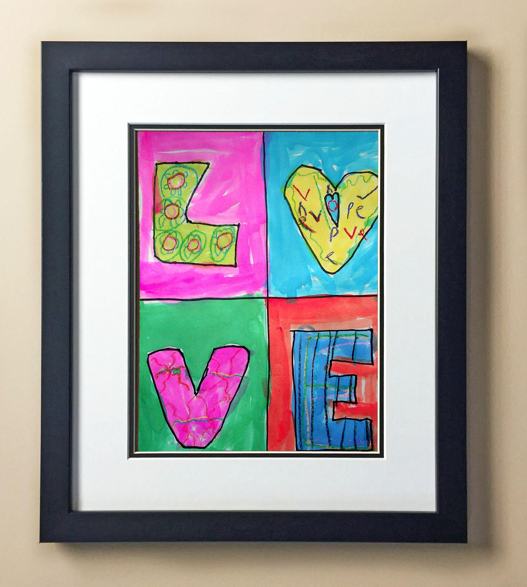 Included with the purchase is the Students Artwork, Frame, double matboard, shatter proof plexiglass, and a ready to hang backerboard with turnbuttons