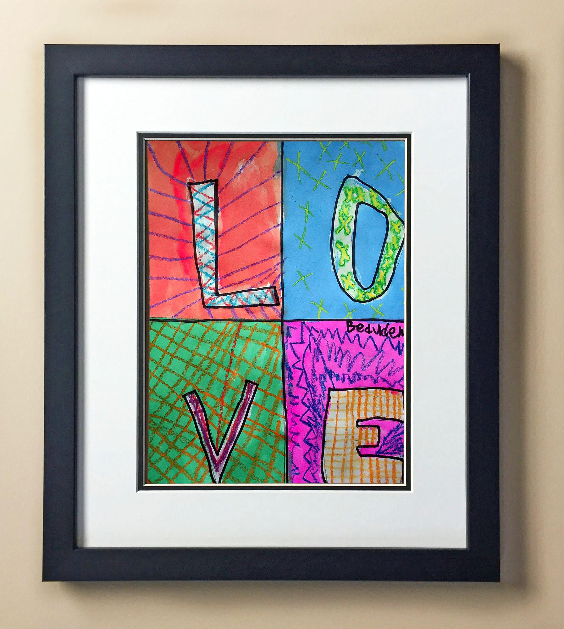 Included with the purchase is the Students Artwork, Frame, double matboard, shatter proof plexiglass, and a ready to hang backerboard with turnbuttons