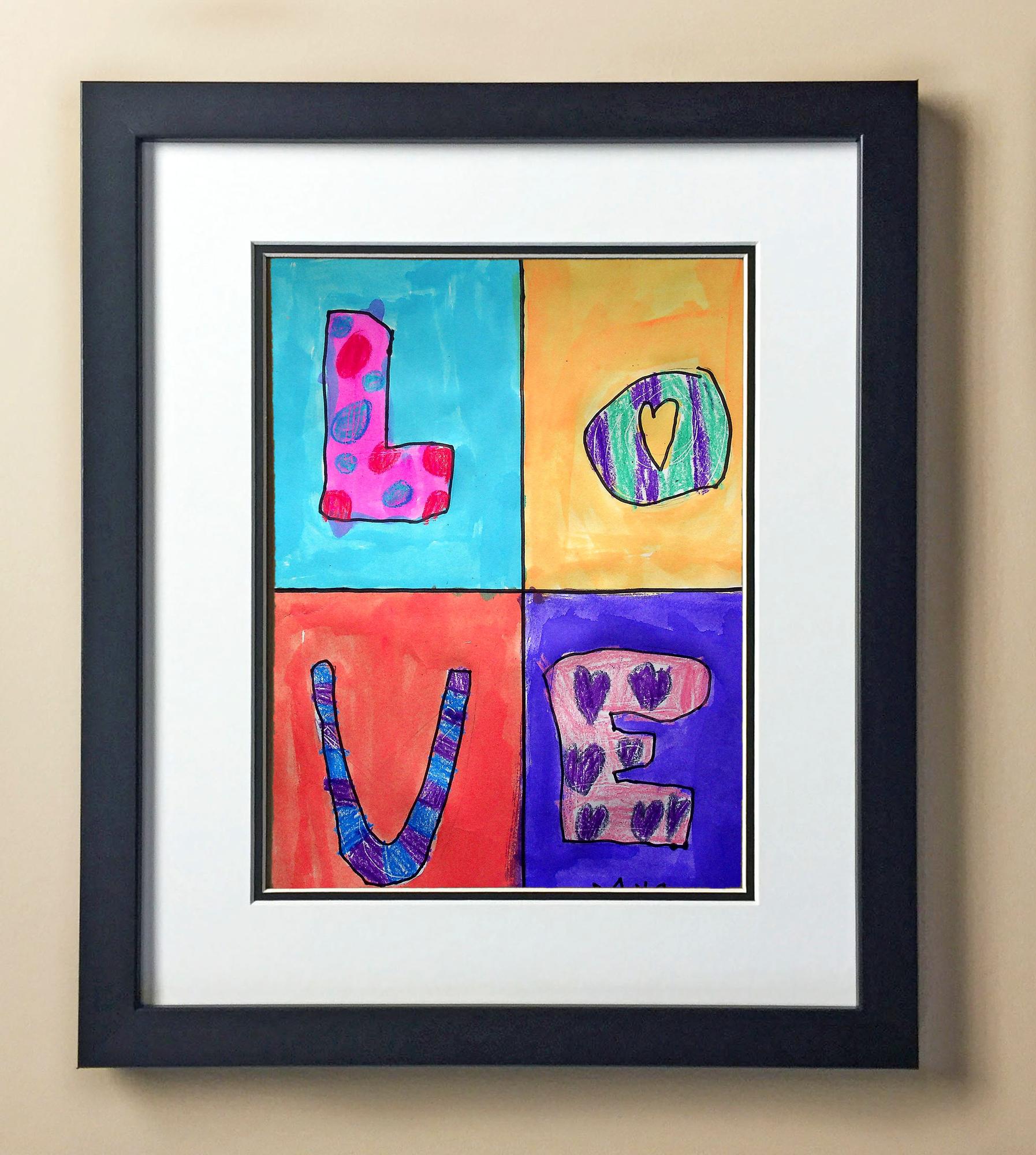 Included with the purchase is the Students Artwork, Frame, double matboard, shatter proof plexiglass, and a ready to hang backerboard with turnbuttons