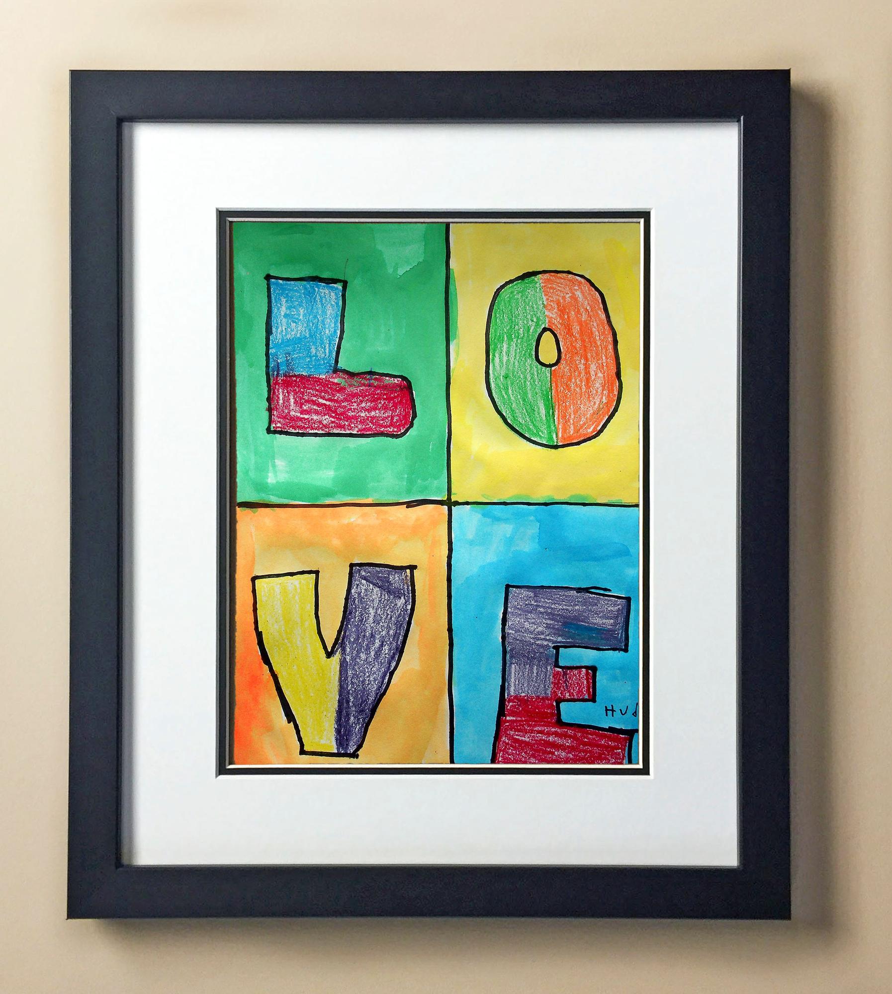 Included with the purchase is the Students Artwork, Frame, double matboard, shatter proof plexiglass, and a ready to hang backerboard with turnbuttons