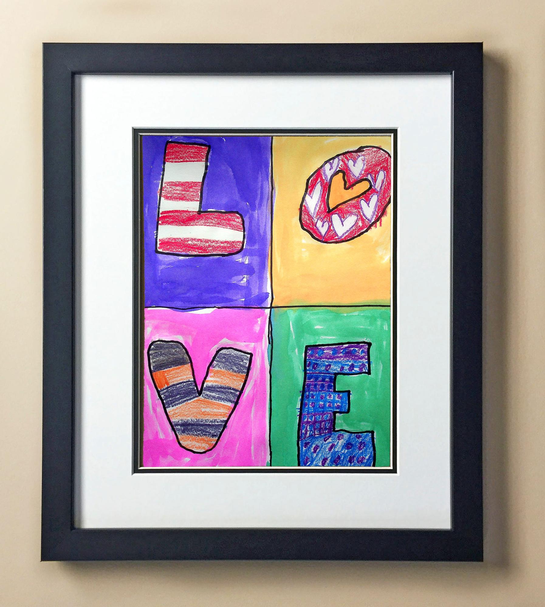 Included with the purchase is the Students Artwork, Frame, double matboard, shatter proof plexiglass, and a ready to hang backerboard with turnbuttons