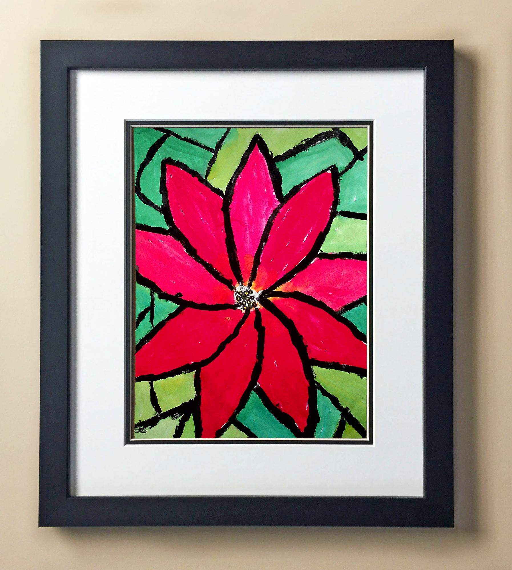 Included with the purchase is the Students Artwork, Frame, double matboard, shatter proof plexiglass, and a ready to hang backerboard with turnbuttons