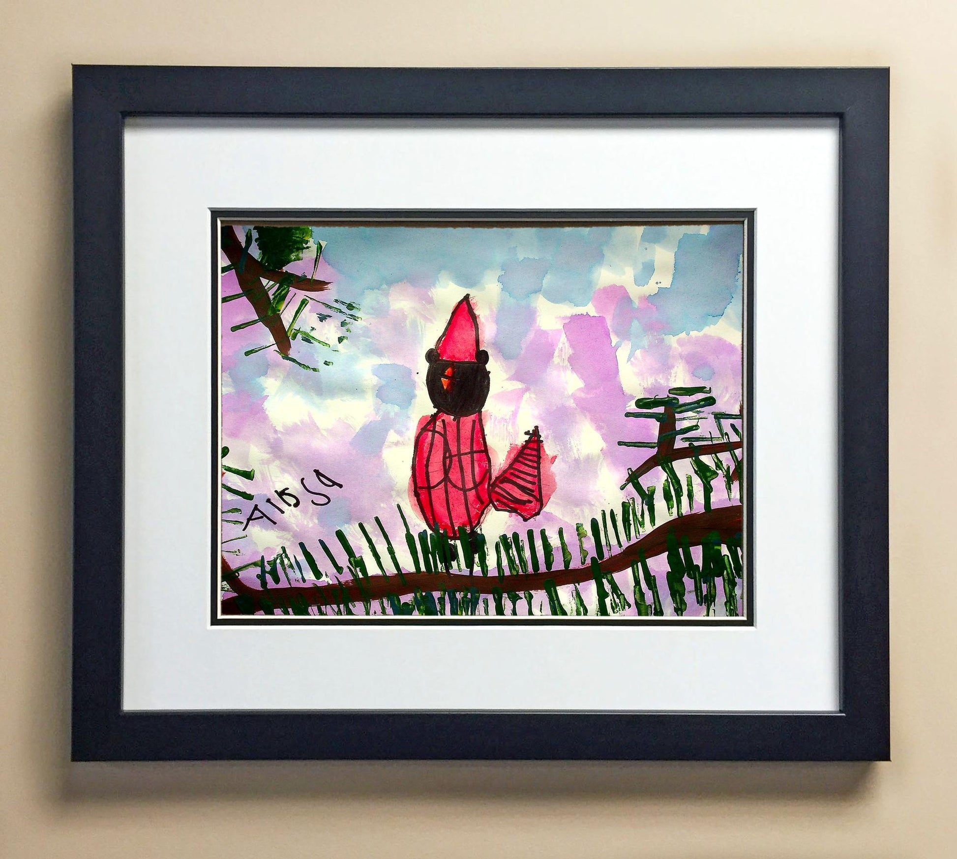 Included with the purchase is the Students Artwork, Frame, double matboard, shatter proof plexiglass, and a ready to hang backerboard with turnbuttons
