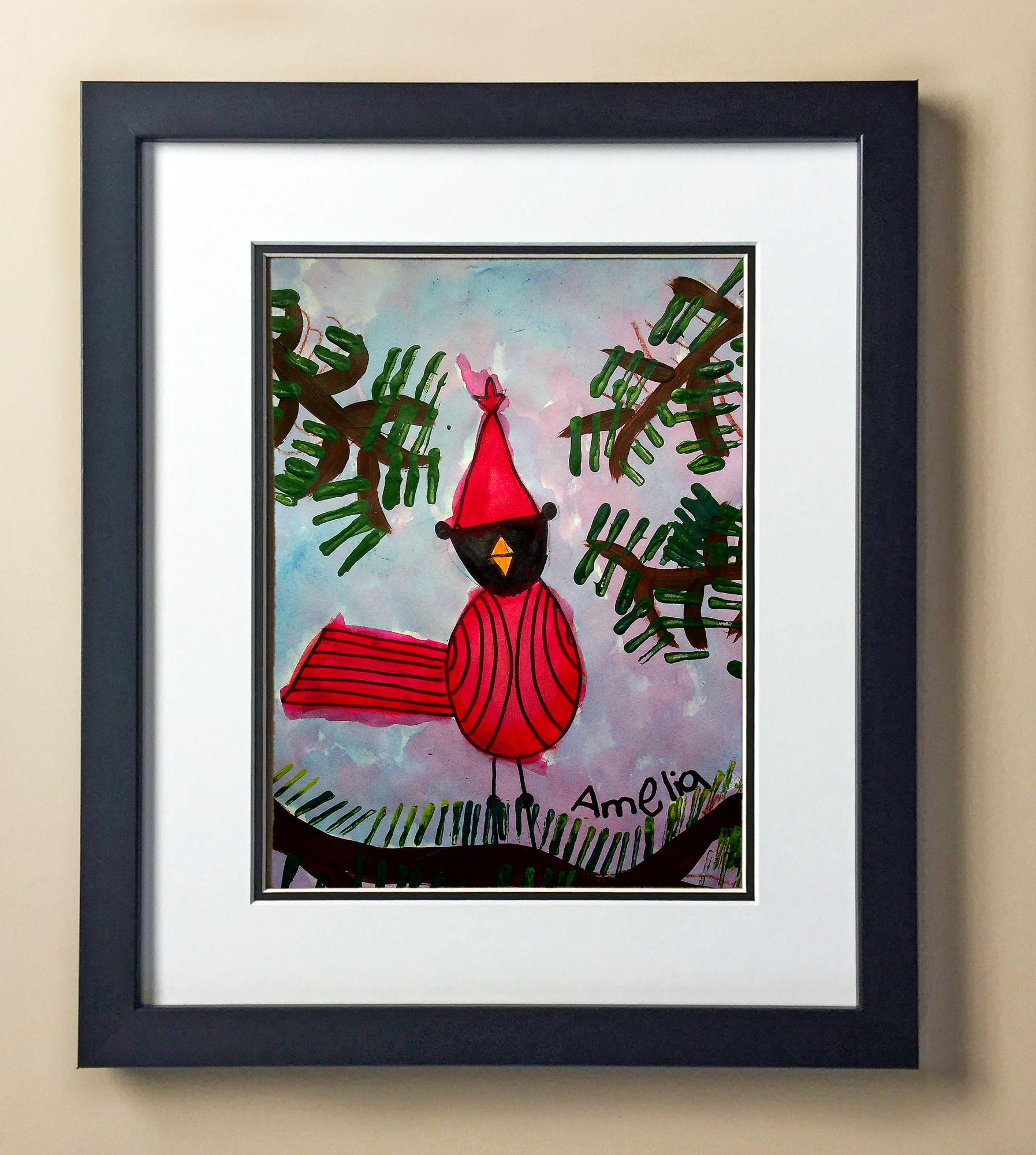 Included with the purchase is the Students Artwork, Frame, double matboard, shatter proof plexiglass, and a ready to hang backerboard with turnbuttons
