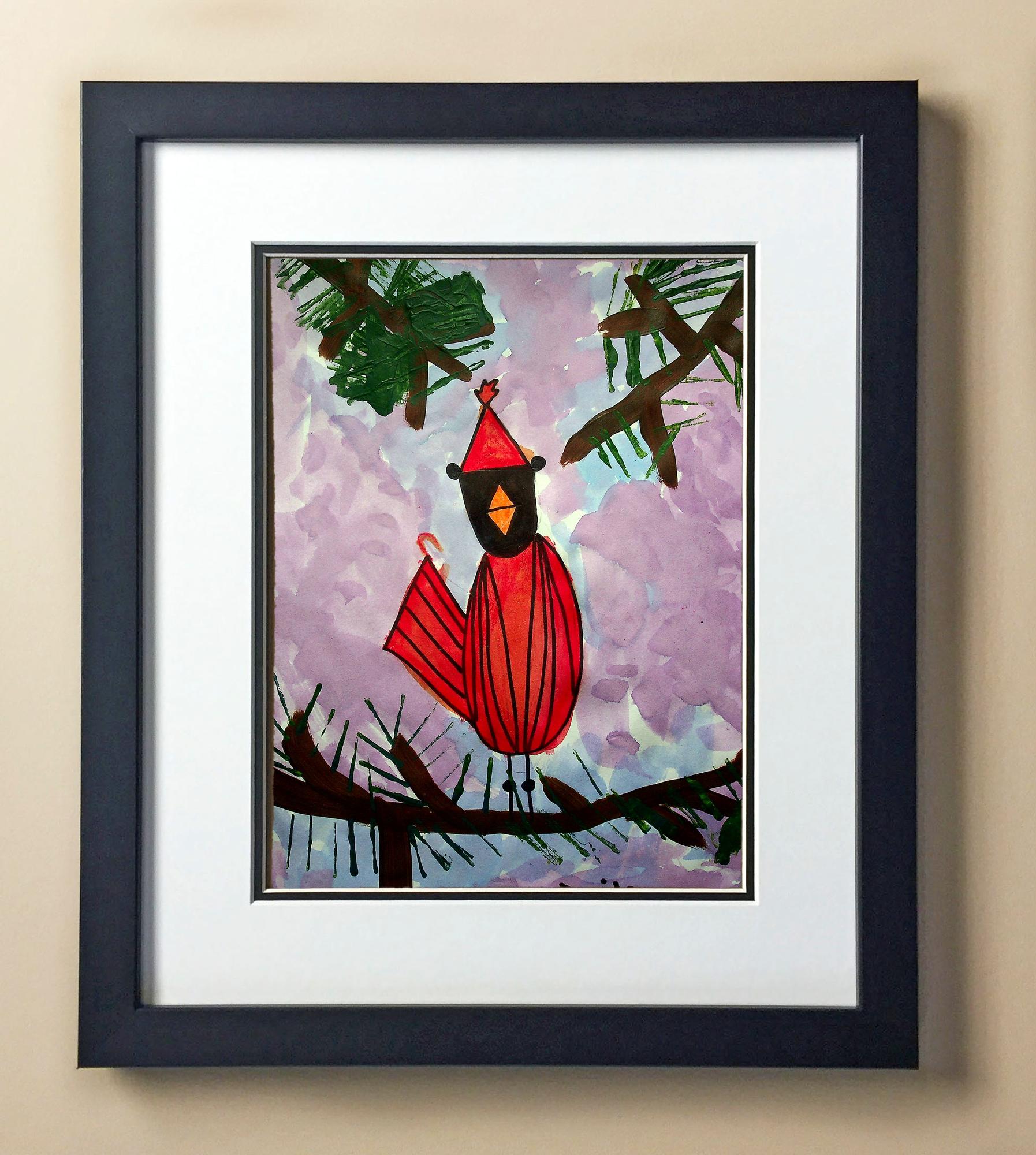 Included with the purchase is the Students Artwork, Frame, double matboard, shatter proof plexiglass, and a ready to hang backerboard with turnbuttons