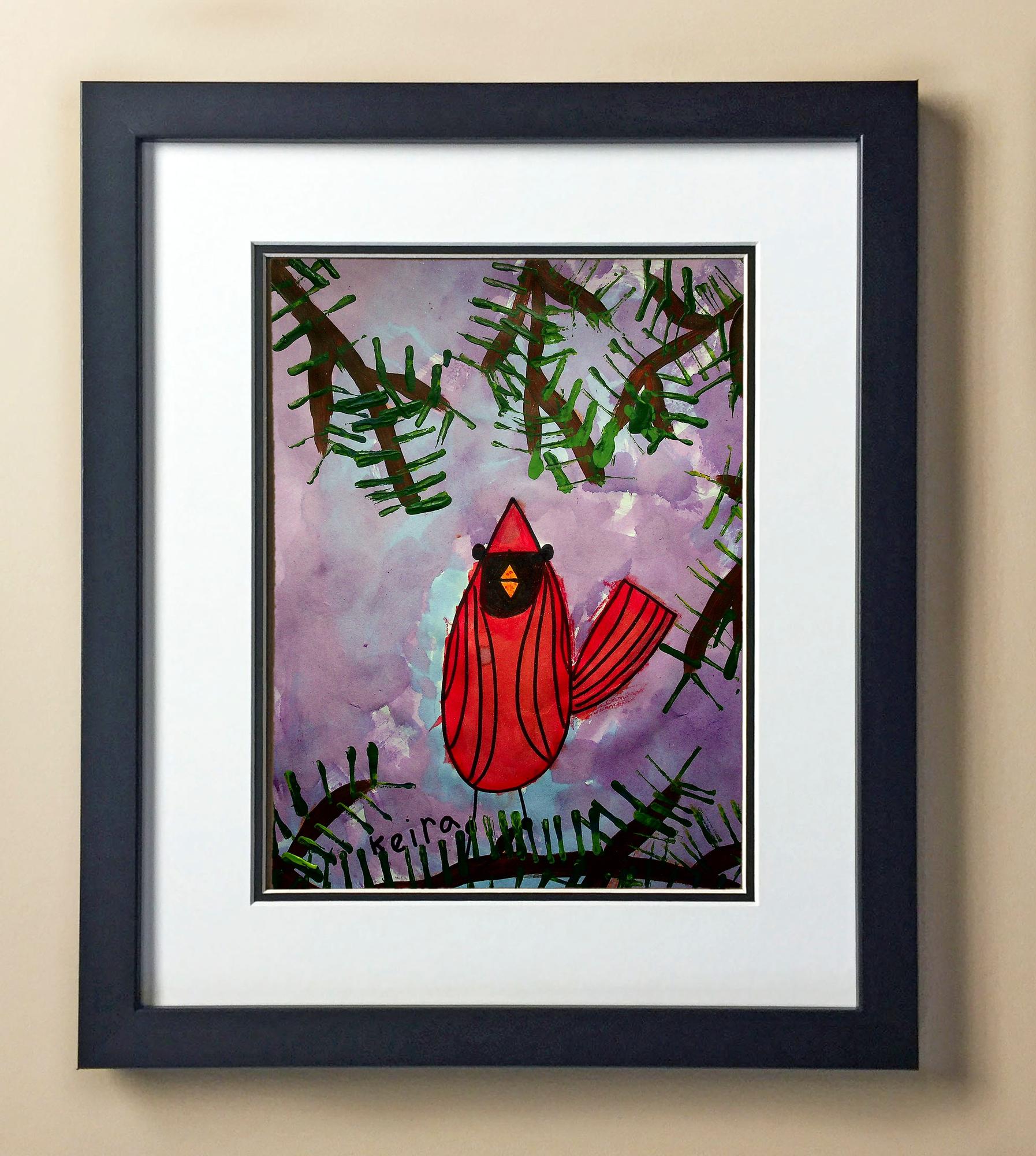Included with the purchase is the Students Artwork, Frame, double matboard, shatter proof plexiglass, and a ready to hang backerboard with turnbuttons