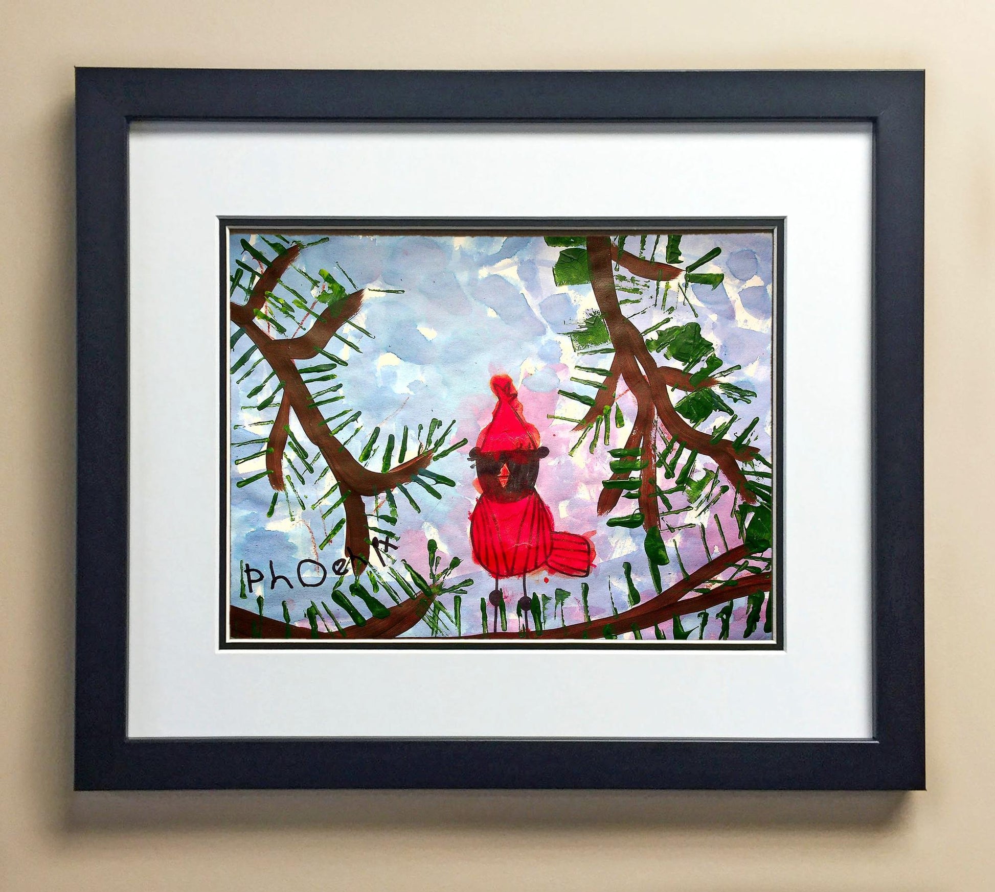 Included with the purchase is the Students Artwork, Frame, double matboard, shatter proof plexiglass, and a ready to hang backerboard with turnbuttons