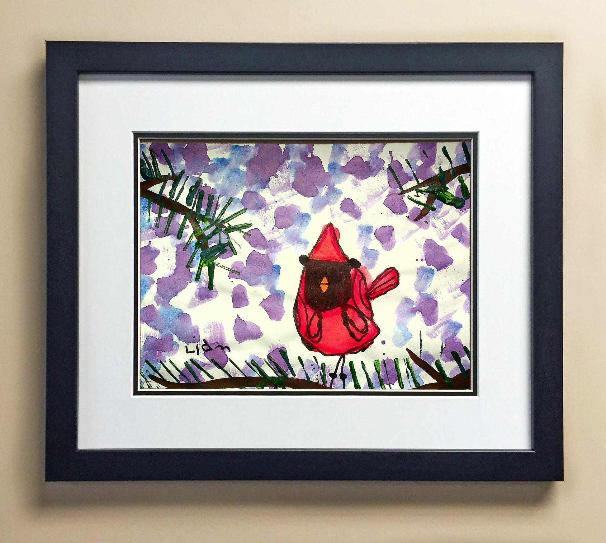 Included with the purchase is the Students Artwork, Frame, double matboard, shatter proof plexiglass, and a ready to hang backerboard with turnbuttons