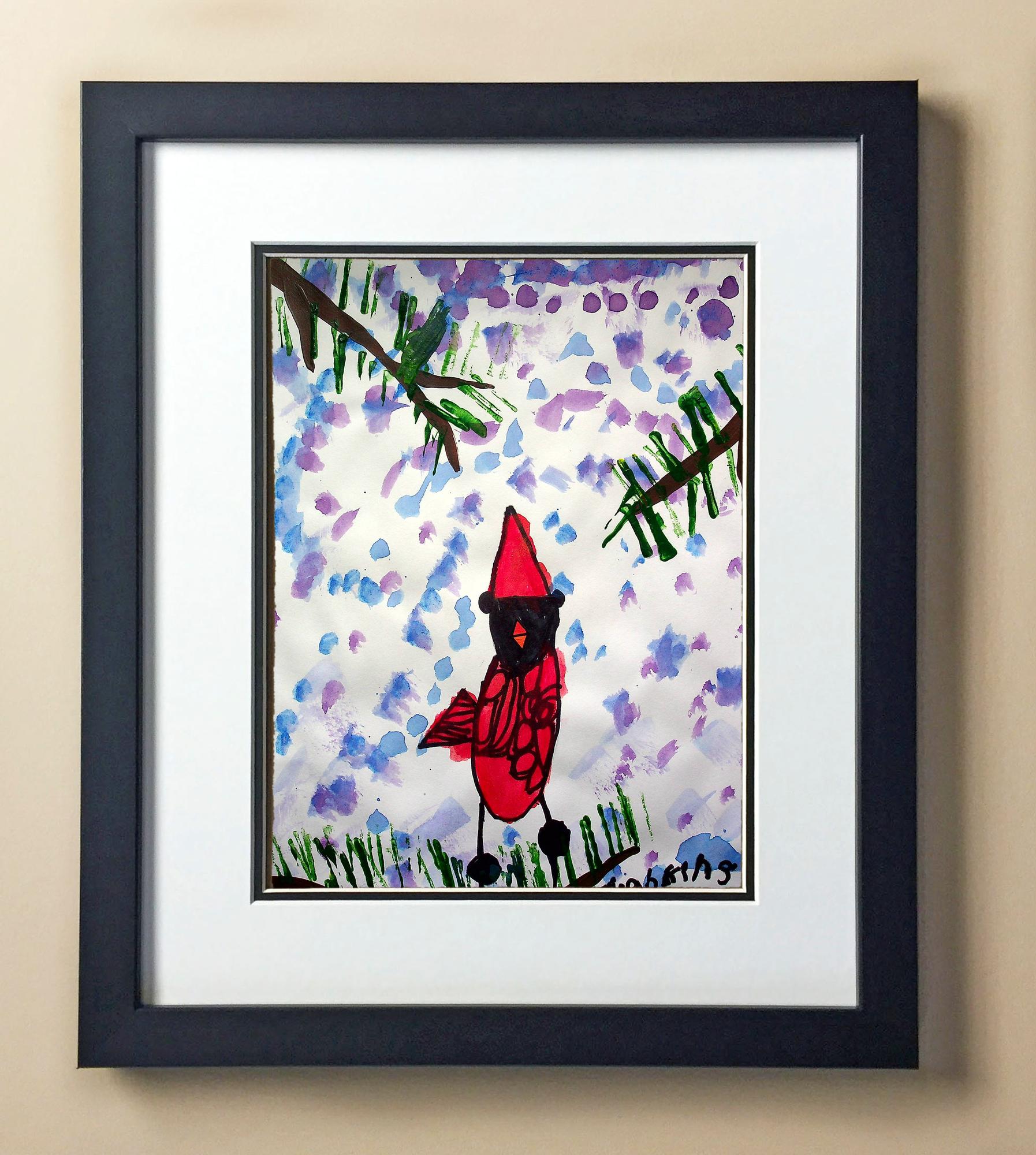 Included with the purchase is the Students Artwork, Frame, double matboard, shatter proof plexiglass, and a ready to hang backerboard with turnbuttons