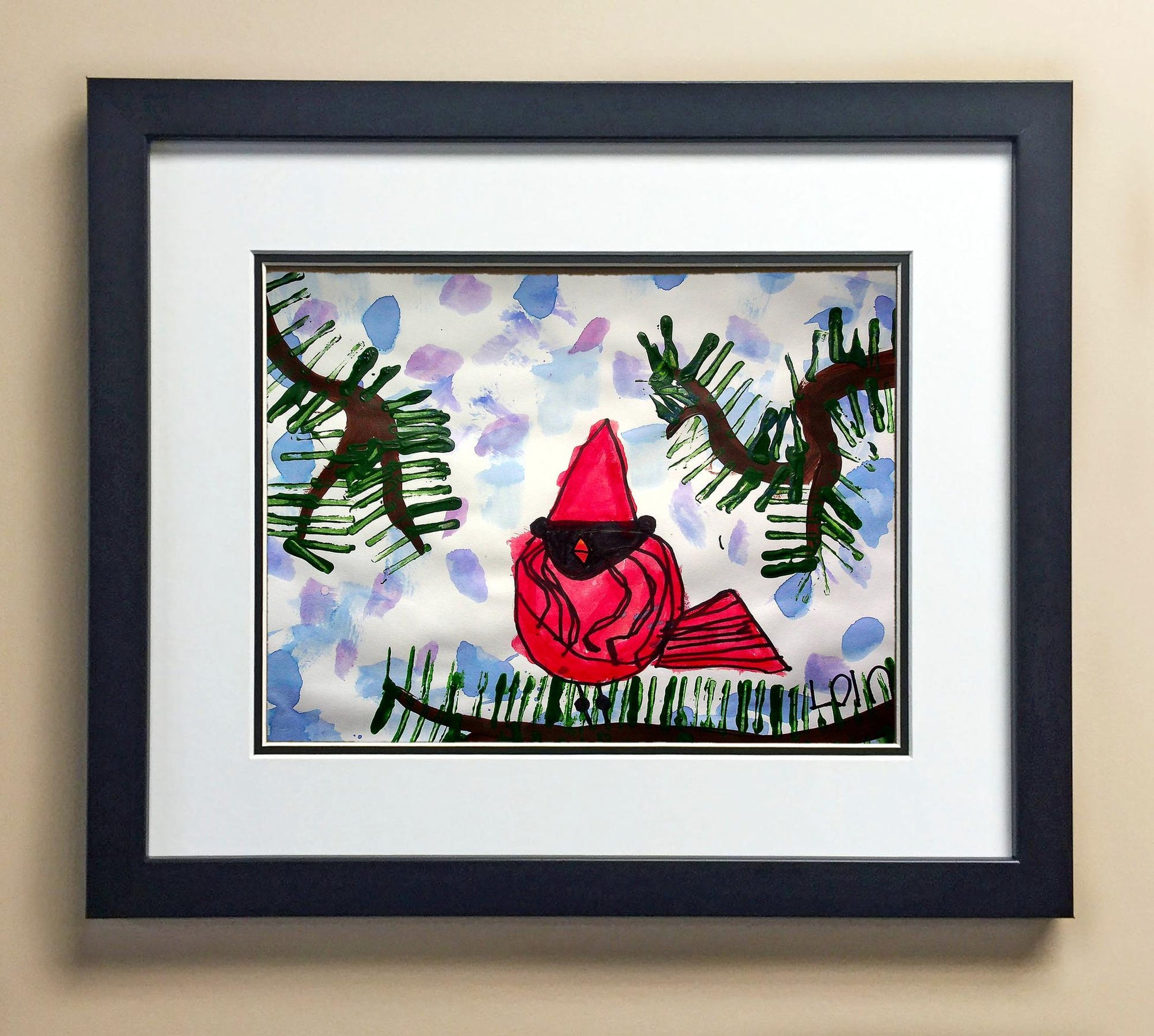 Included with the purchase is the Students Artwork, Frame, double matboard, shatter proof plexiglass, and a ready to hang backerboard with turnbuttons