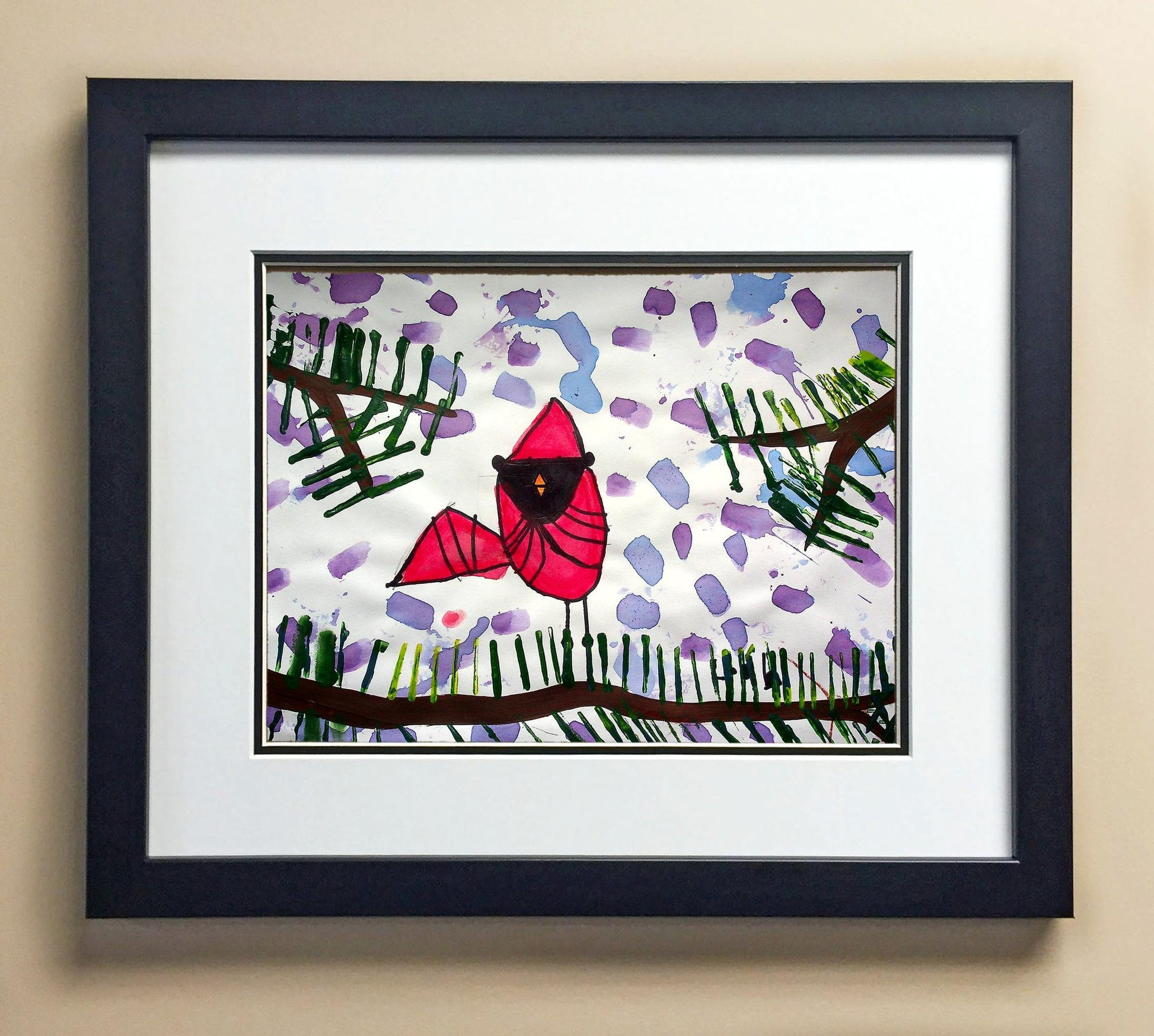 Included with the purchase is the Students Artwork, Frame, double matboard, shatter proof plexiglass, and a ready to hang backerboard with turnbuttons