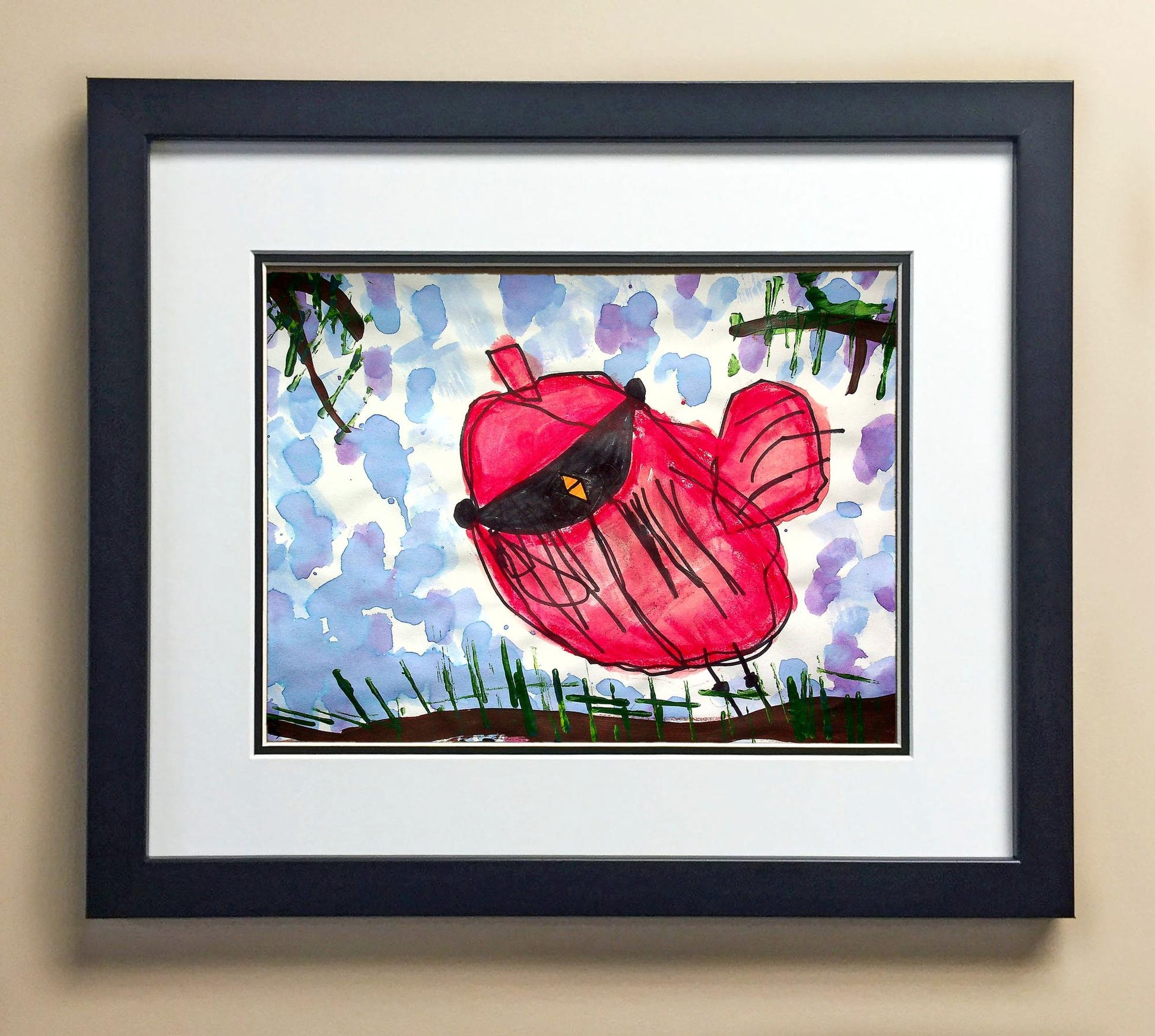 Included with the purchase is the Students Artwork, Frame, double matboard, shatter proof plexiglass, and a ready to hang backerboard with turnbuttons