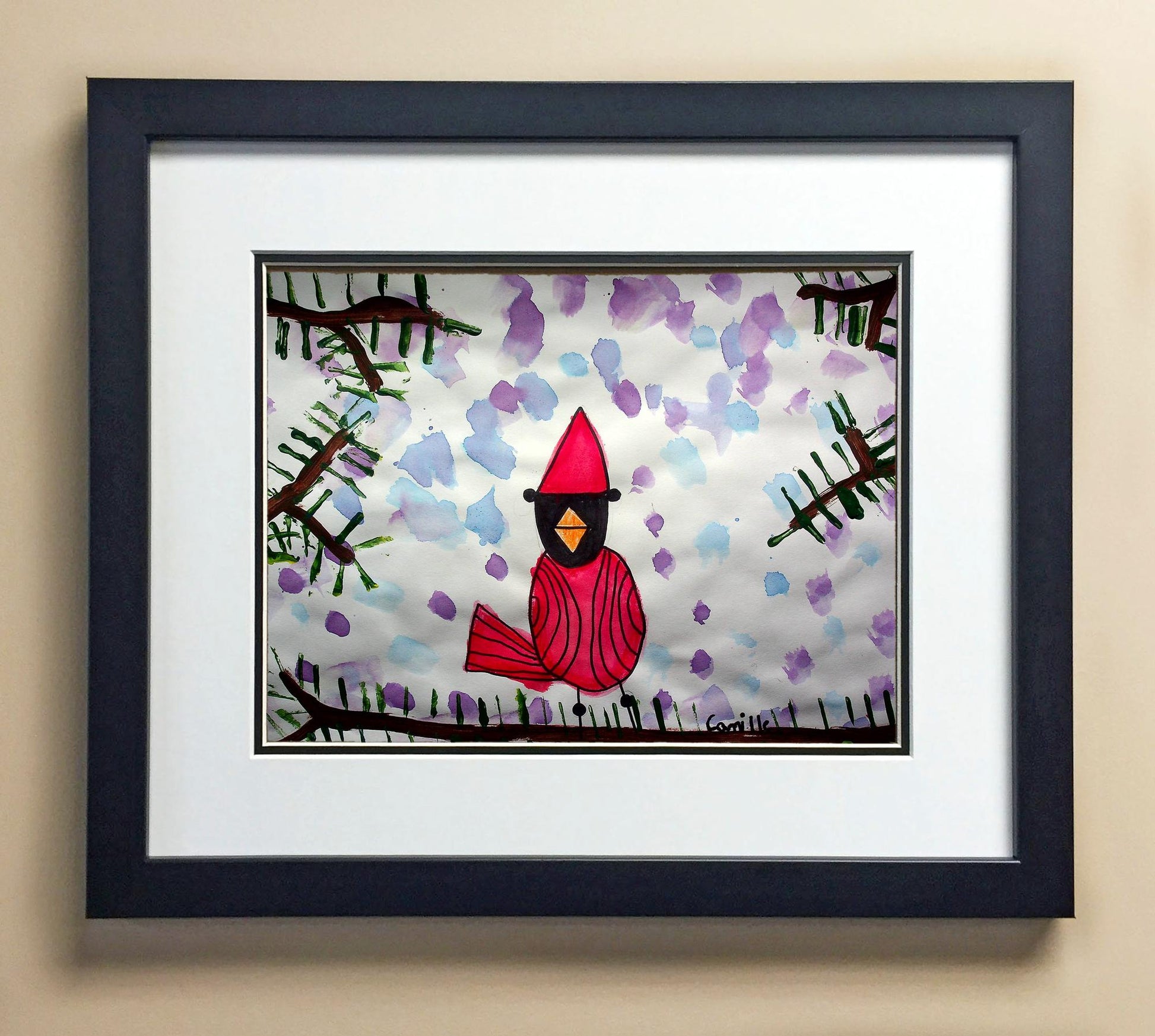 Included with the purchase is the Students Artwork, Frame, double matboard, shatter proof plexiglass, and a ready to hang backerboard with turnbuttons