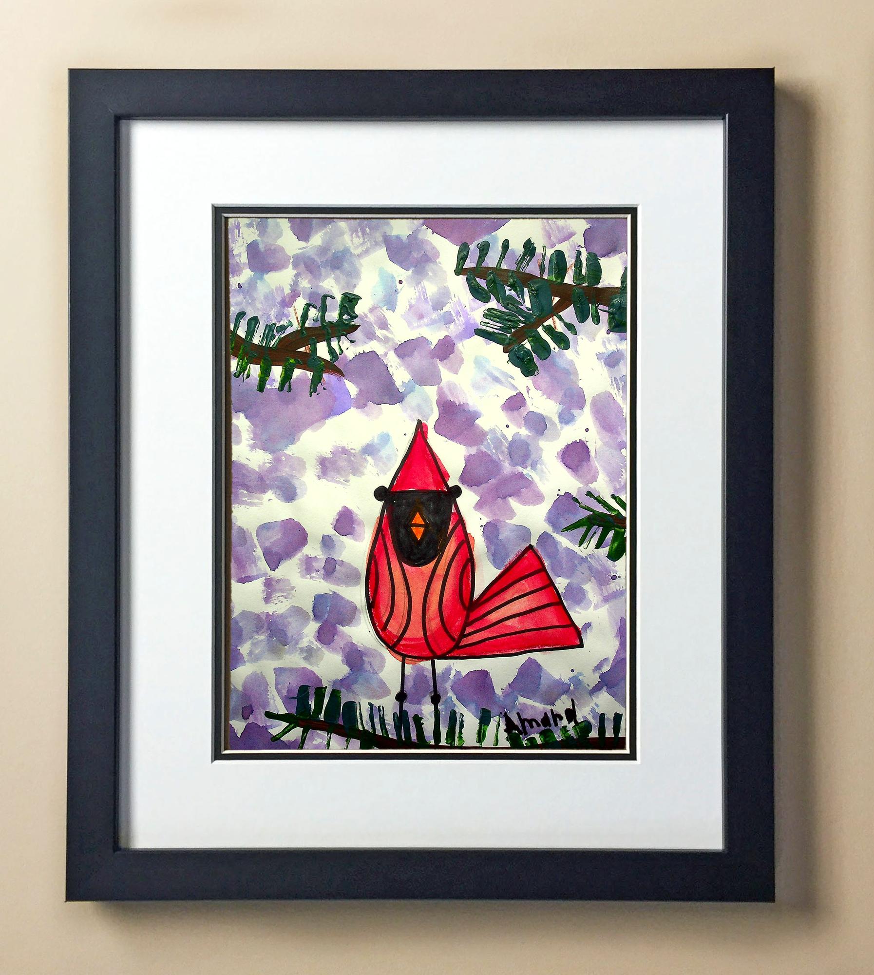 Included with the purchase is the Students Artwork, Frame, double matboard, shatter proof plexiglass, and a ready to hang backerboard with turnbuttons
