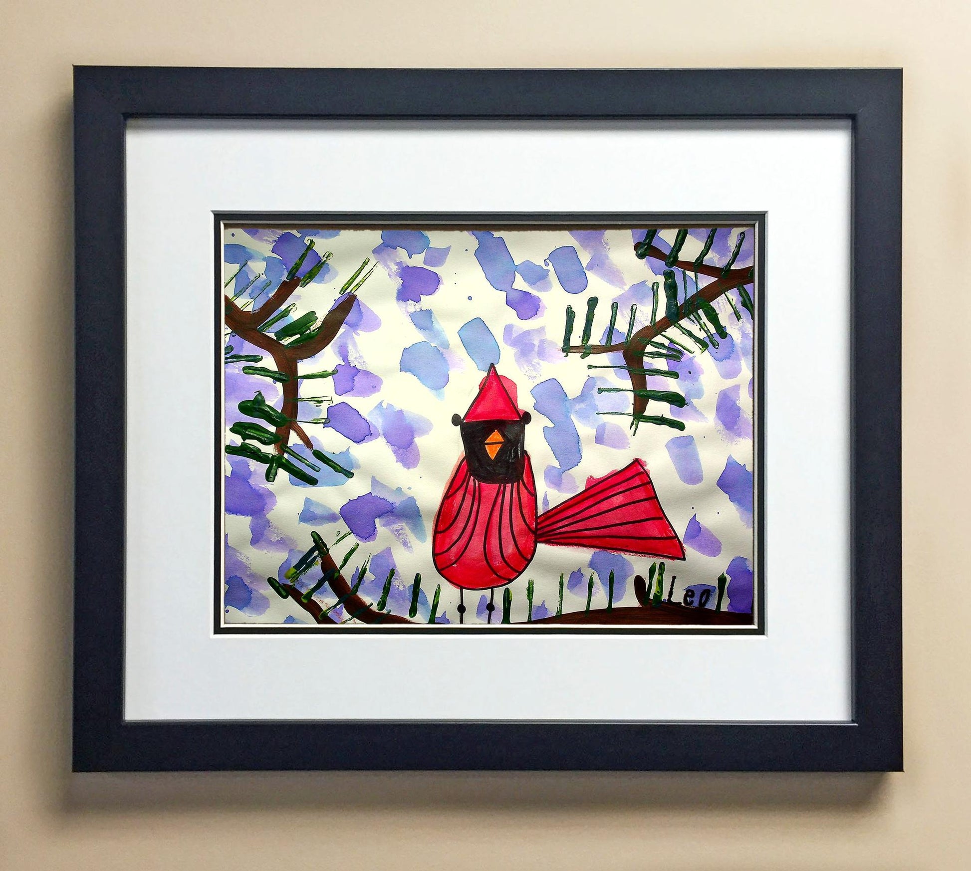 Included with the purchase is the Students Artwork, Frame, double matboard, shatter proof plexiglass, and a ready to hang backerboard with turnbuttons