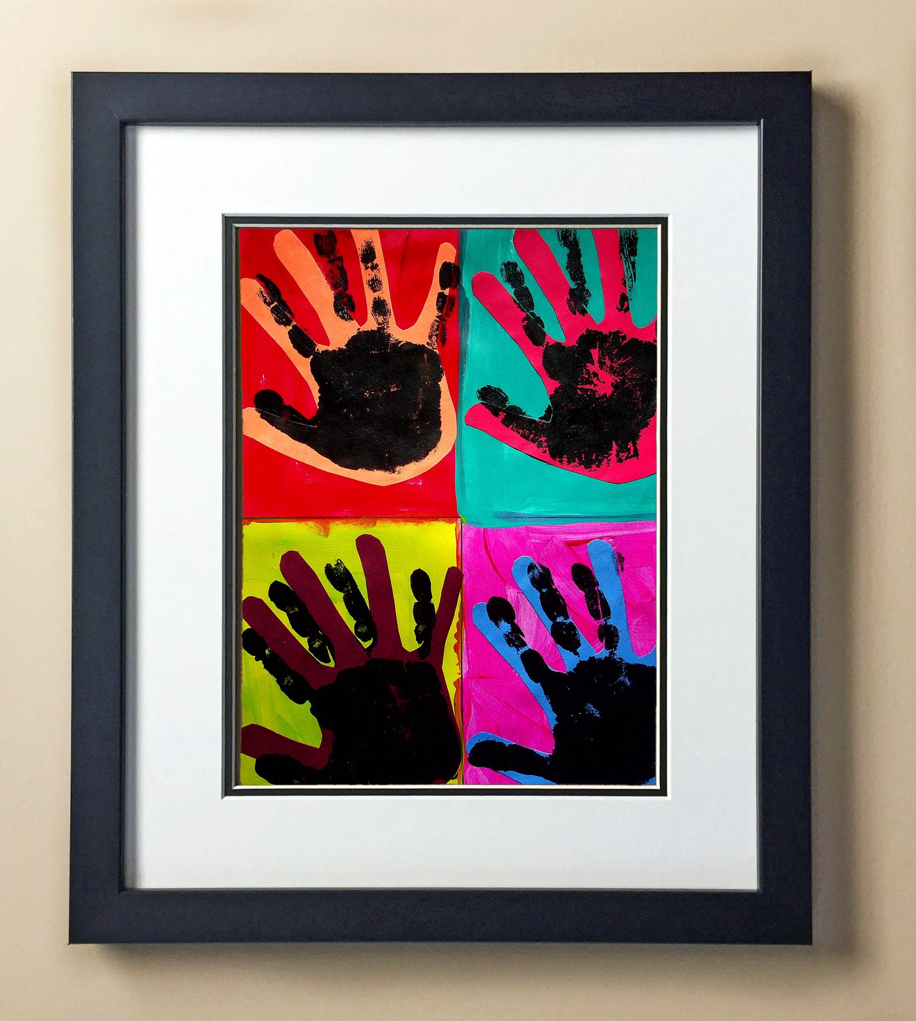 Included with the purchase is the Students Artwork, Frame, double matboard, shatter proof plexiglass, and a ready to hang backerboard with turnbuttons