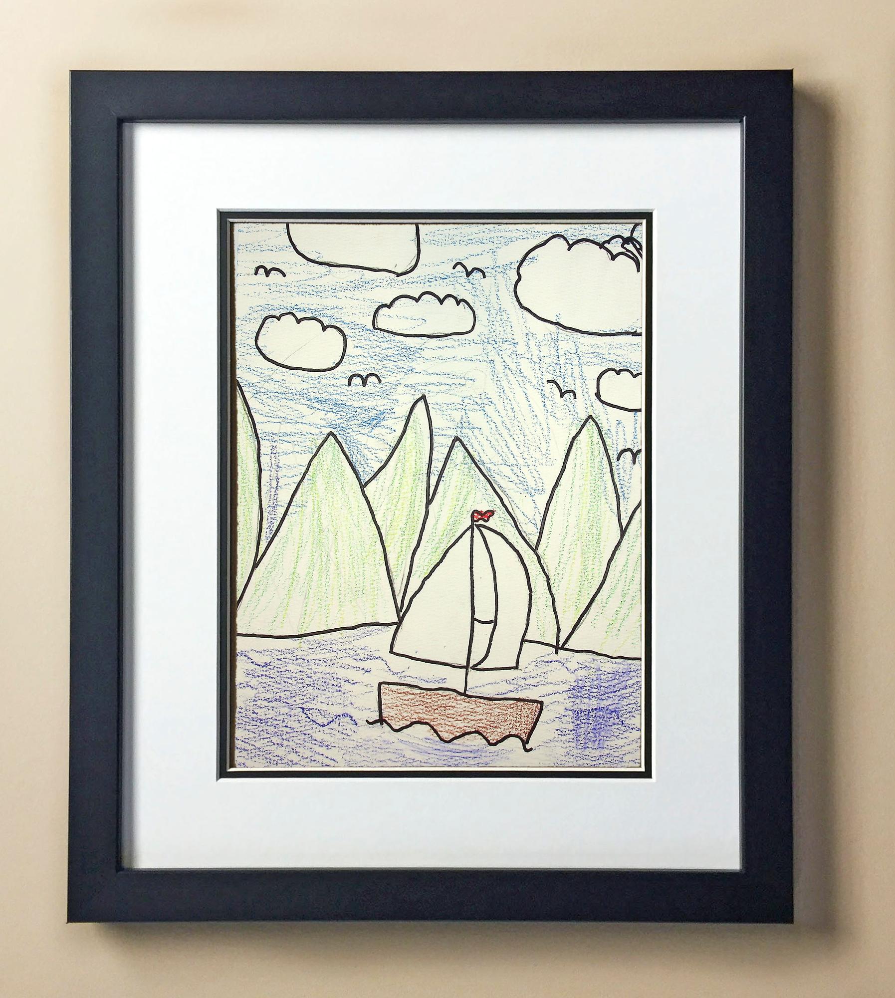 Included with the purchase is the Students Artwork, Frame, double matboard, shatter proof plexiglass, and a ready to hang backerboard with turnbuttons