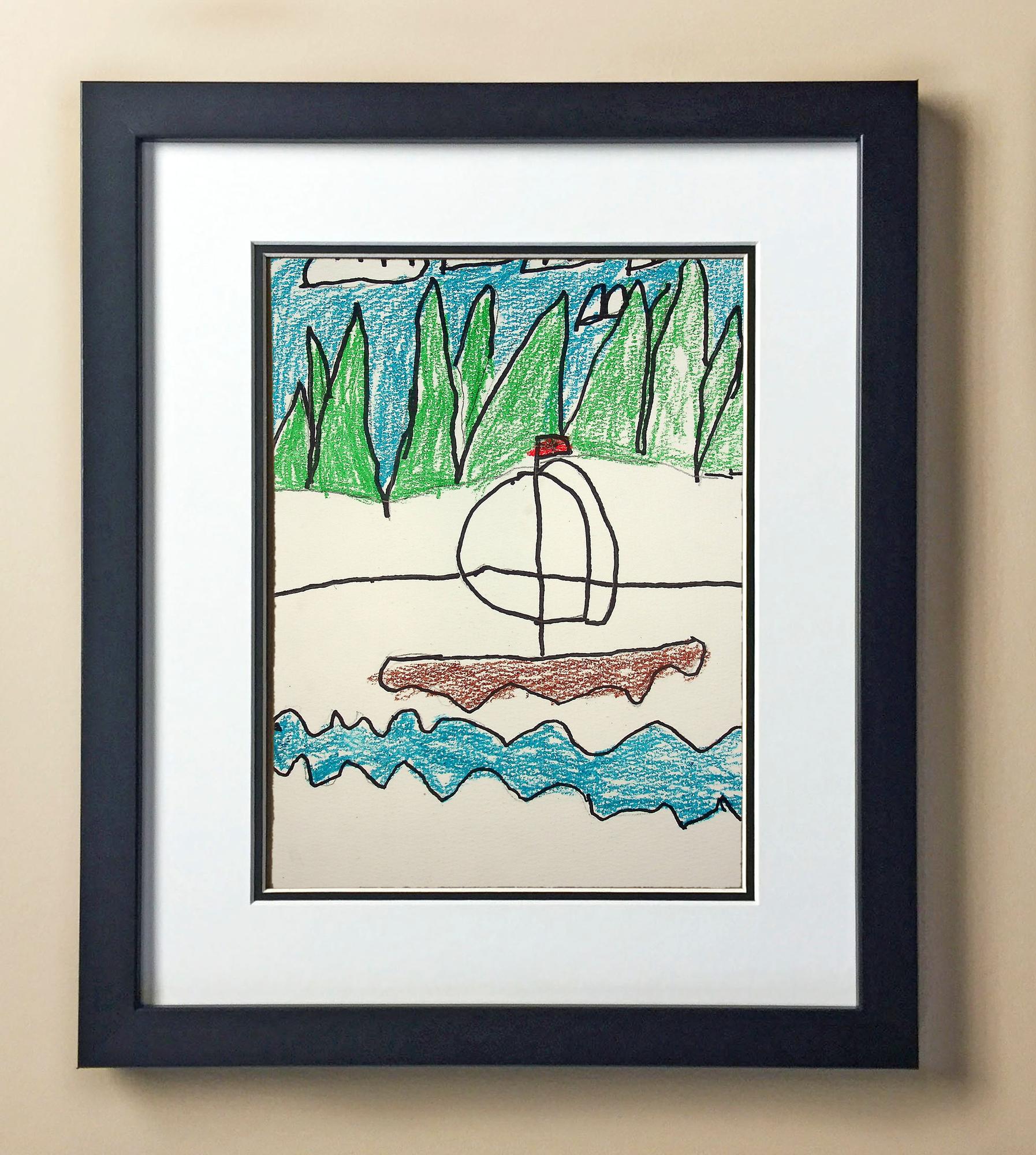 Included with the purchase is the Students Artwork, Frame, double matboard, shatter proof plexiglass, and a ready to hang backerboard with turnbuttons